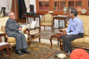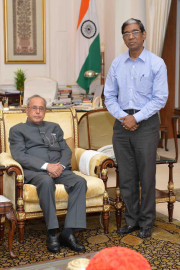 | Caption: | The President of India, Shri Pranab Mukherjee meeting with Shri Pran Gopal Dutta, at Rashtrapati Bhavan, in New Delhi on October 03, 2015. |