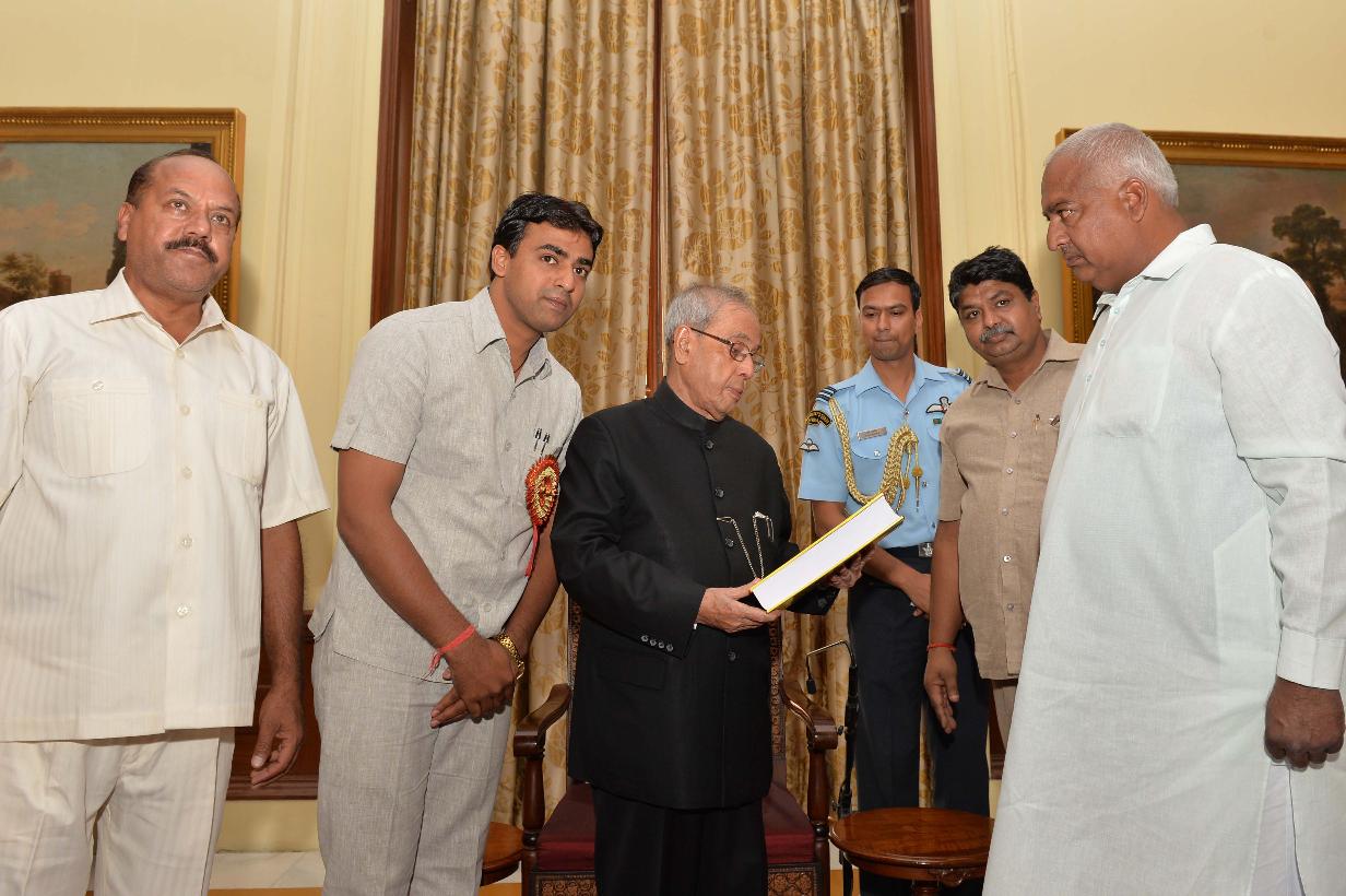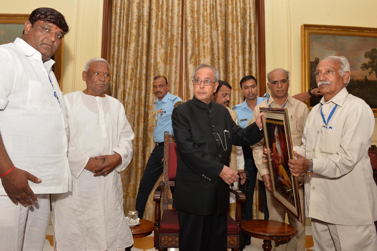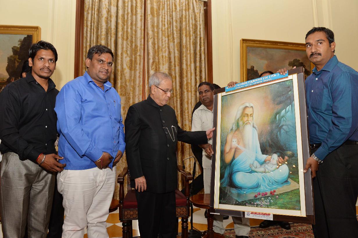| Caption: | The President of India, Shri Pranab Mukherjee meeting with the group of people from various organisations, on the occasion of Maharishi Valmiki's Birthday, at Rashtrapati Bhavan, in New Delhi on October 27, 2015. |