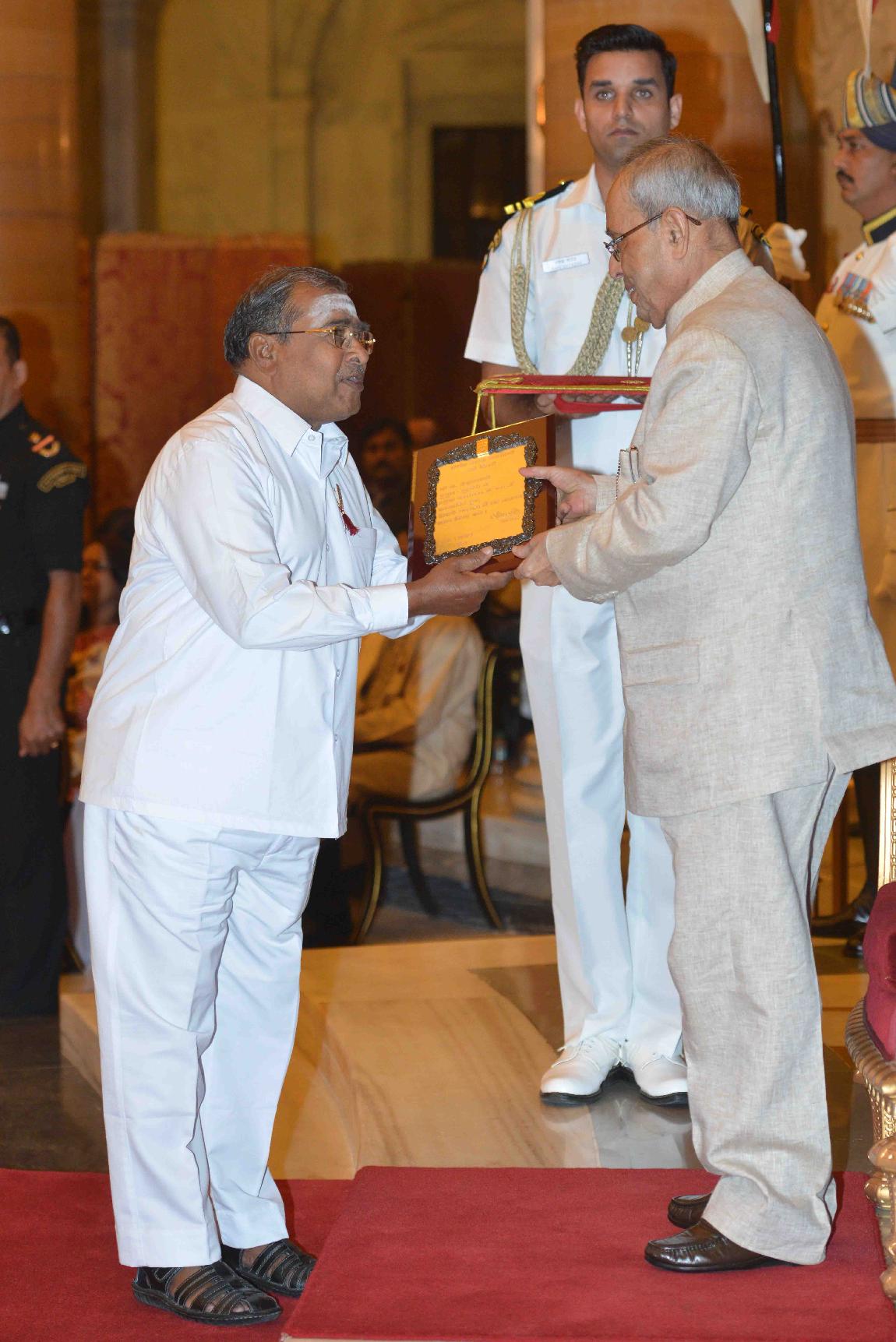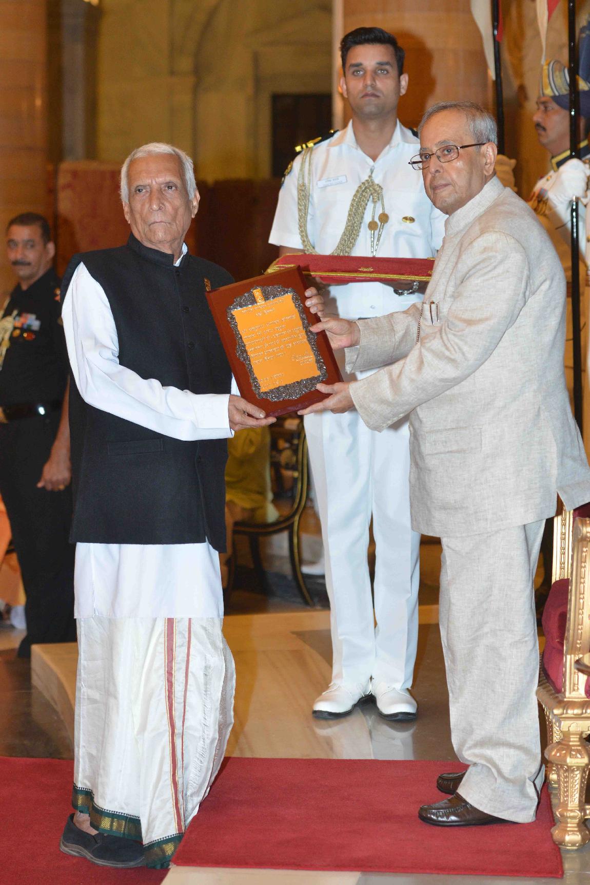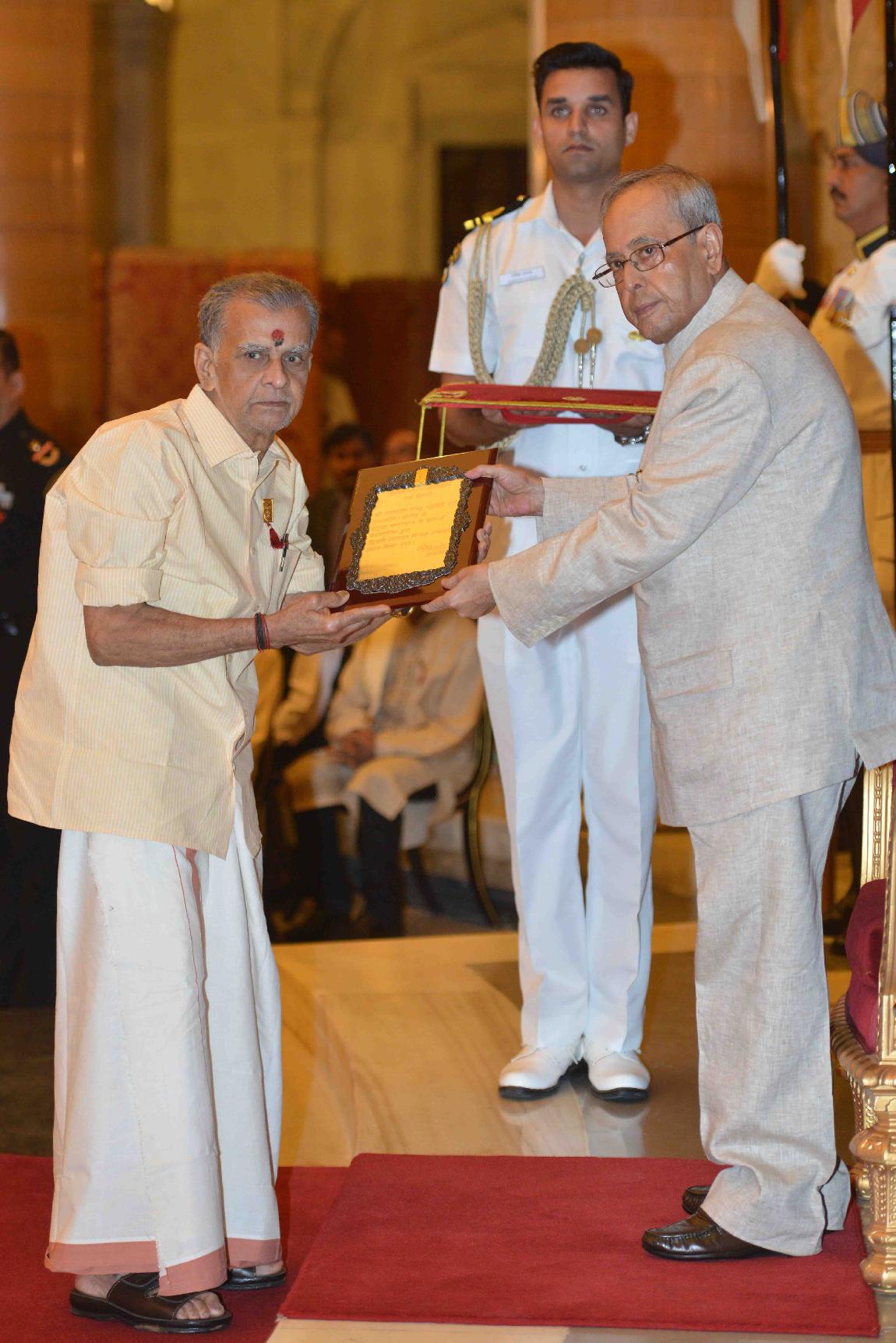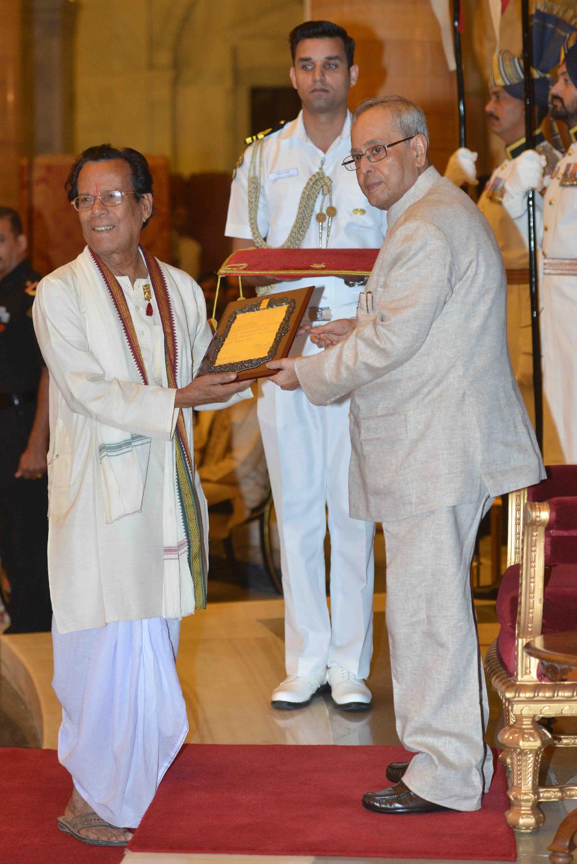 | Caption: | The President of India, Shri Pranab Mukherjee presenting Sangeet Natak Akademi Awards for the year 2014, at Rashtrapati Bhavan on October 23, 2015. |