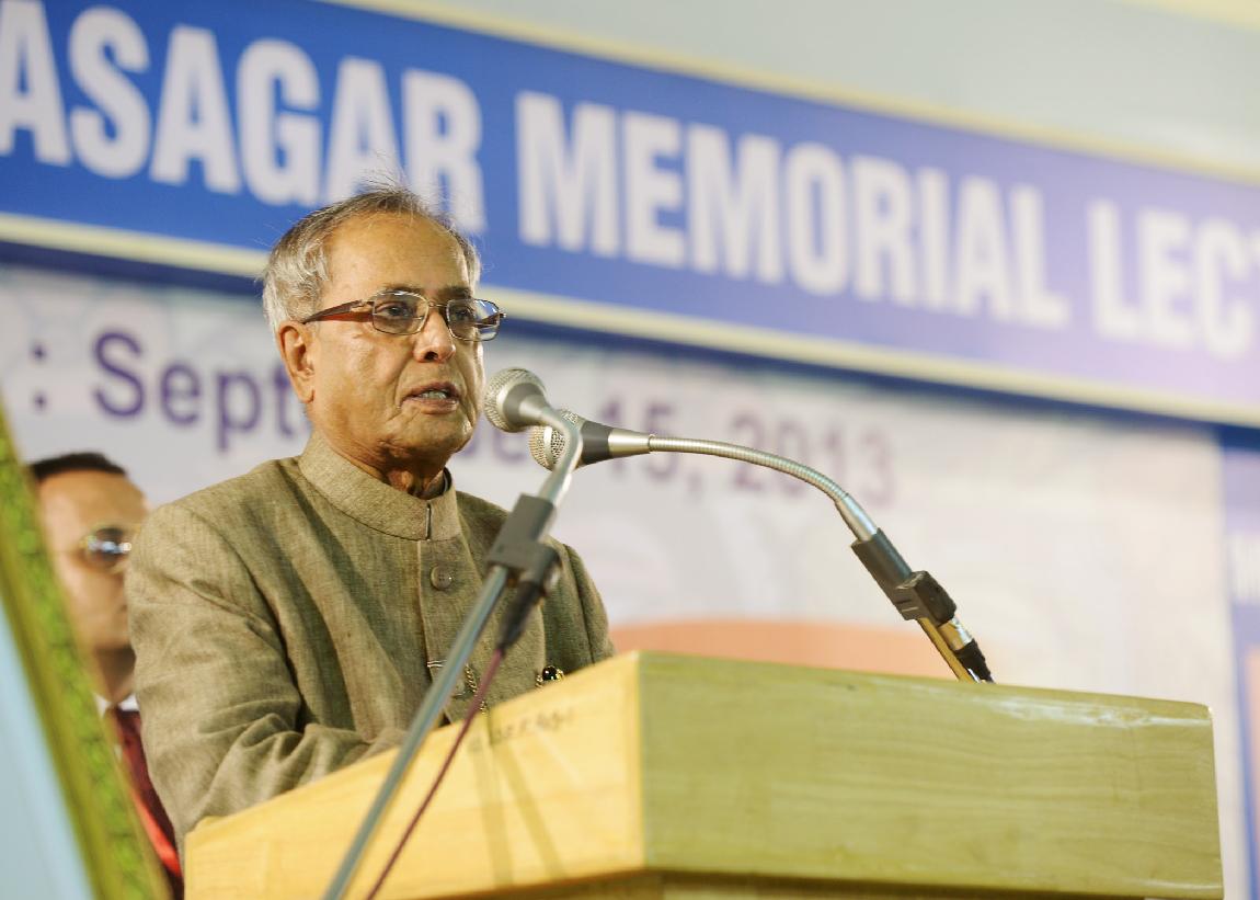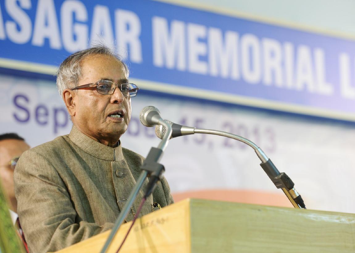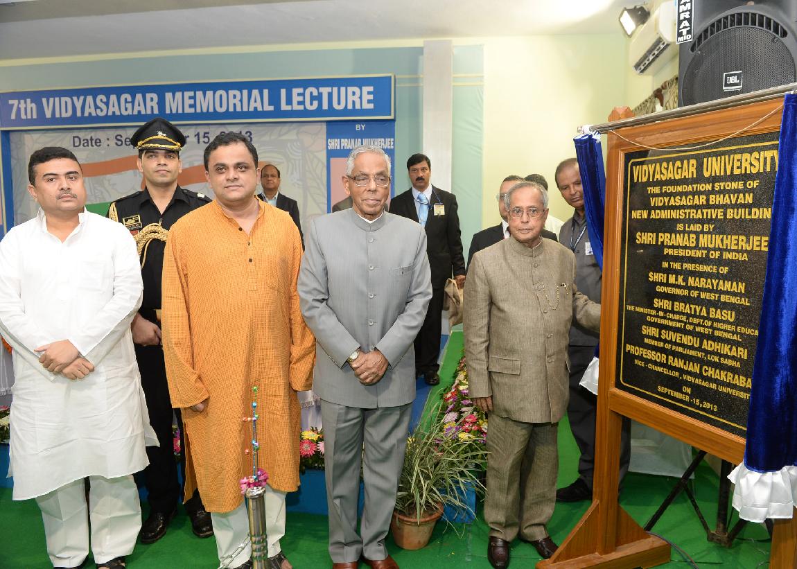 | Caption: | The President of India, Shri Pranab Mukherjee during Delivering the 7th Vidyasagar Memorial Lecture and Laying the Foundation Stone of Vidya Bhavan, New Administrative Buliding at Vidyasagar University at Medinipur in West Bengal on Sep 15, 2013 |
