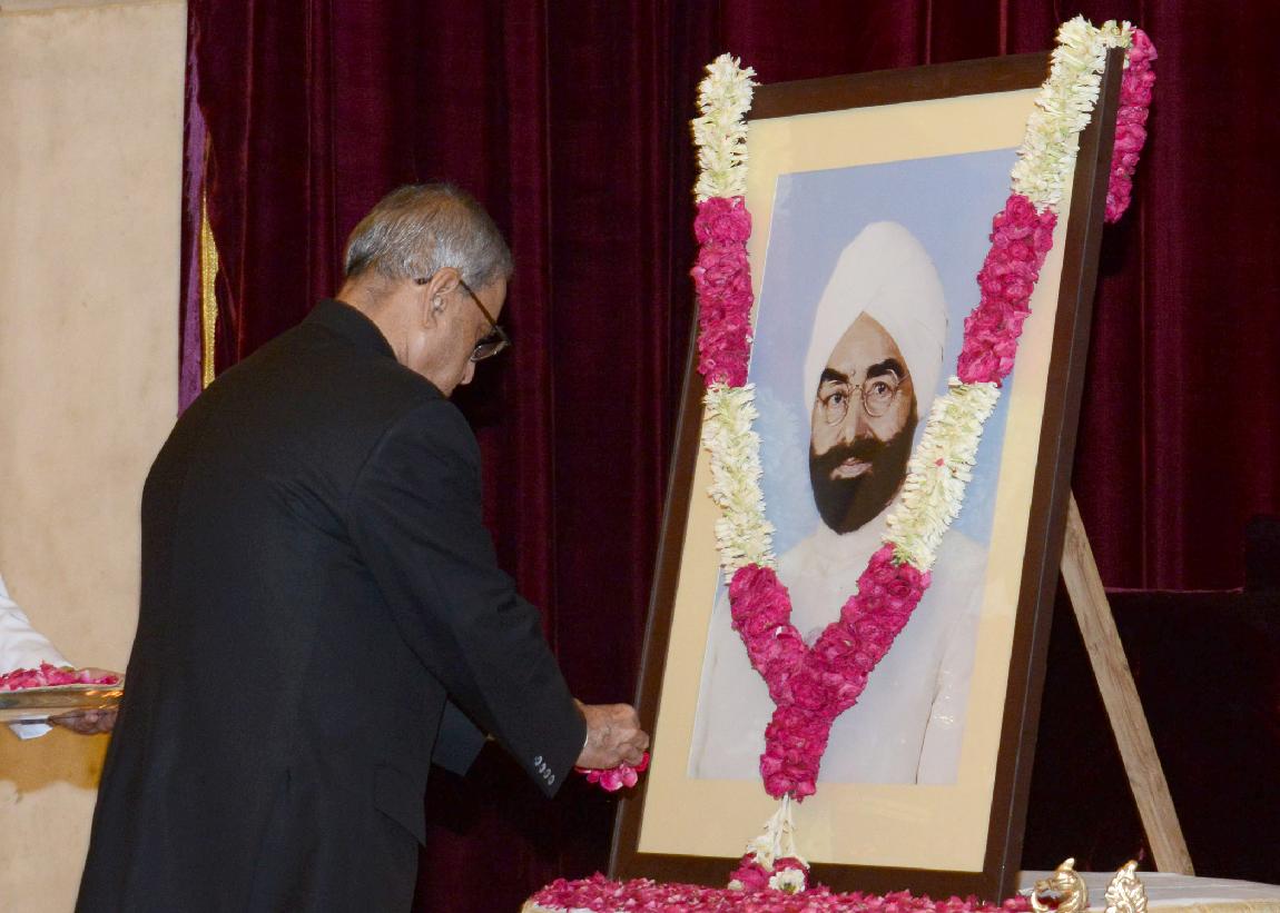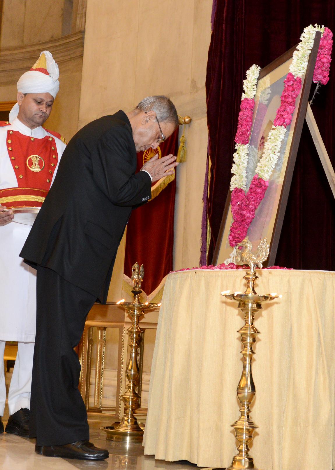 | Caption: | The President of India, Shri Pranab Mukherjee paying floral tributes to the Former President of India, Late Shri Giani Zail Singh on his Birth Anniversary at the Durbar Hall of Rashtrapati Bhavan in New Delhi on May 05, 2014 |