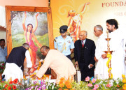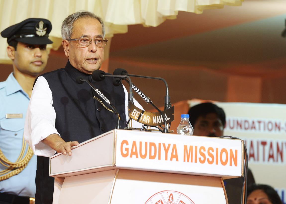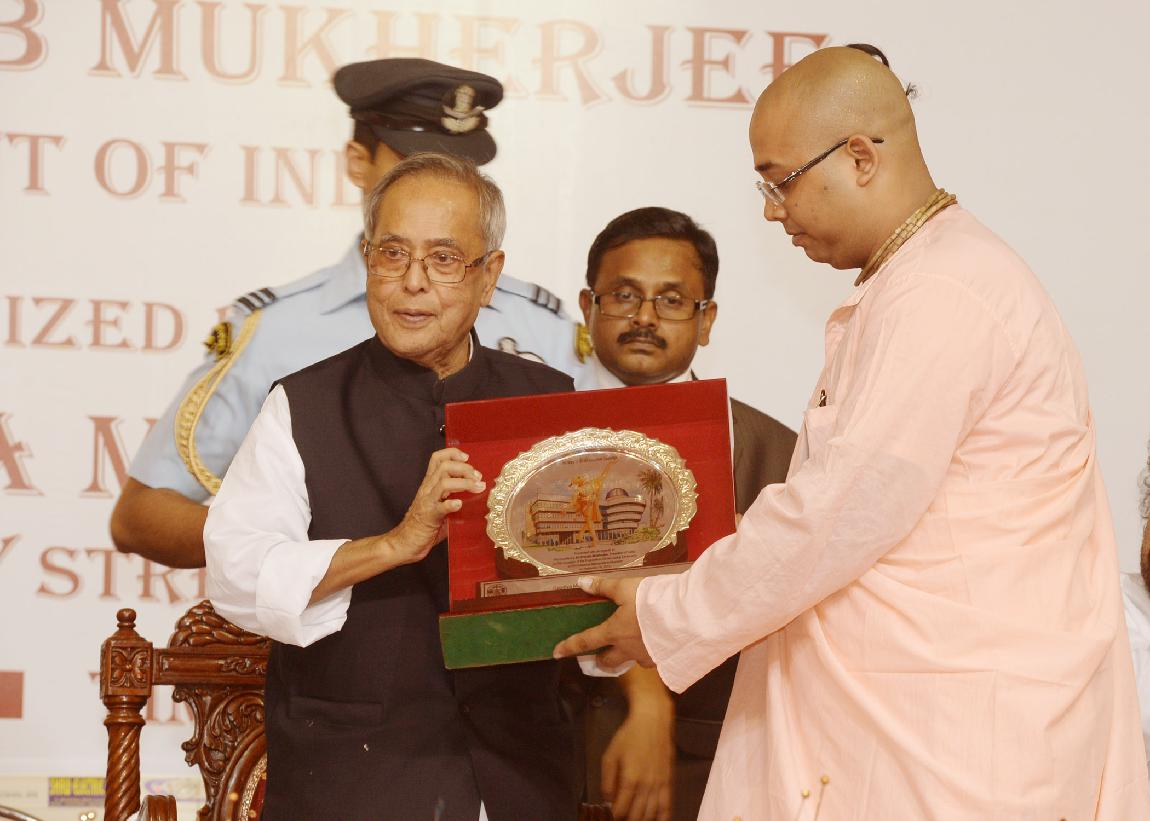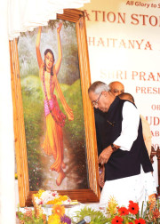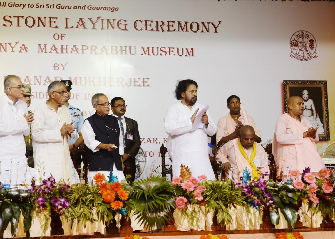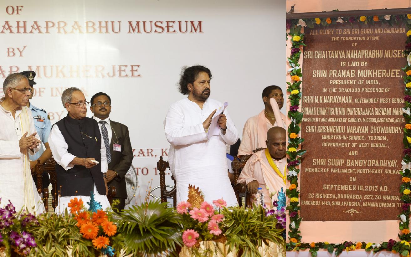 | Caption: | The President of India, Shri Pranab Mukherjee at the function and pressing the button to unveil the Foundation Stone (Plaque) of the Sri Chaitanya Mahaprabhu Museum at Sri Gaudiya Math, Baghbazar at Kolkata in West Bengal on Sep 16, 2013 |