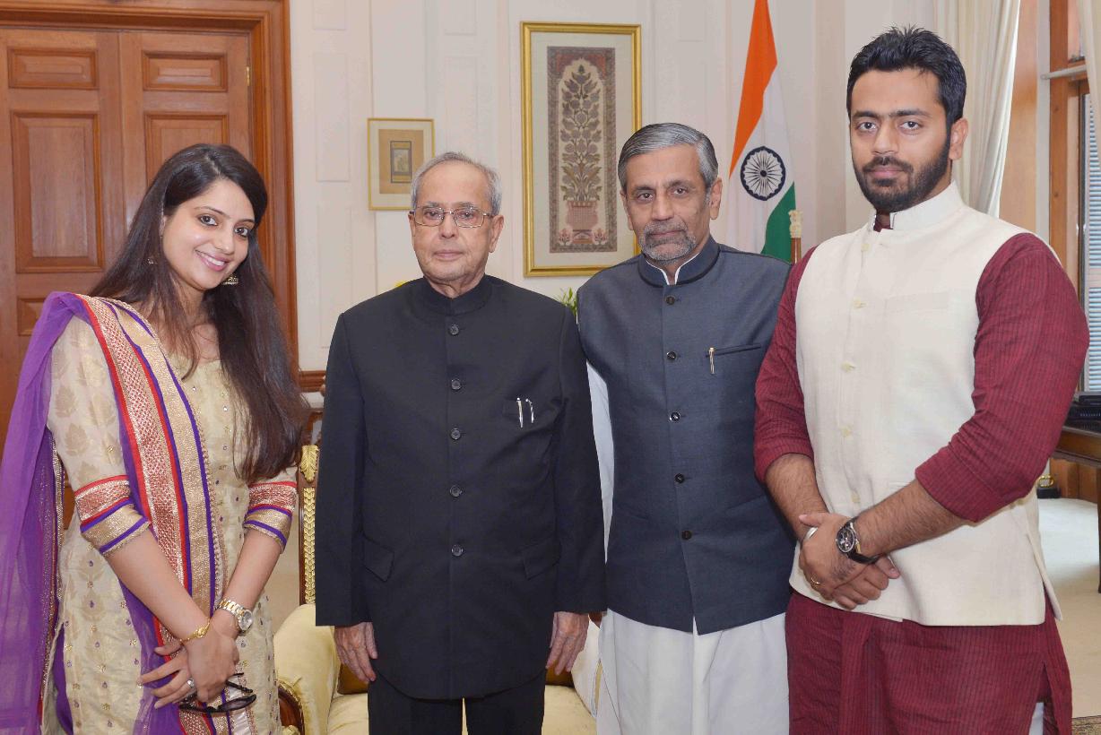 | Caption: | The President of India, Shri Pranab Mukherjee meeting with Capt. Praveen Davar, Member National Commission for Minorities alongwith his son & daughter-in-law, on the occasion of Diwali, at Rashtrapati Bhavan on November 11, 2015. |