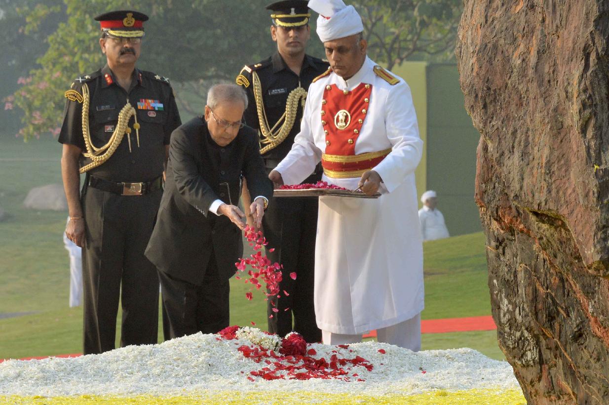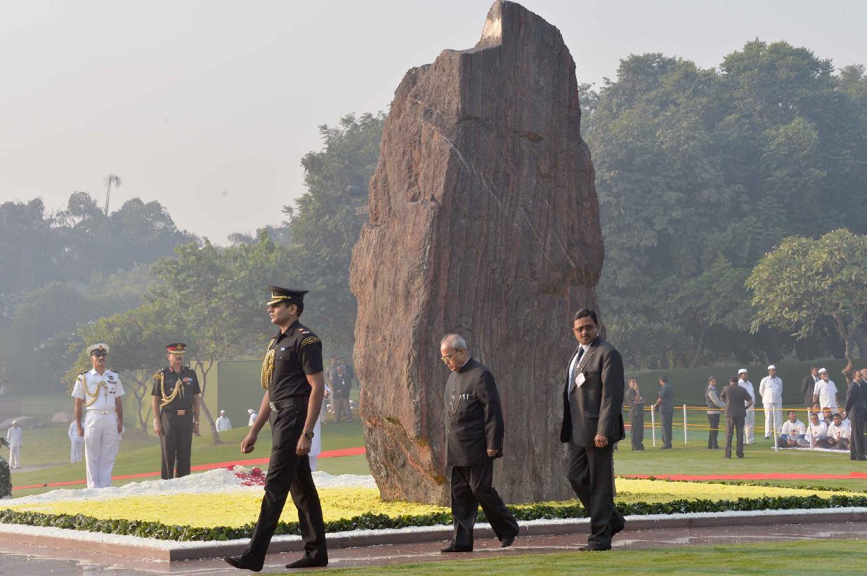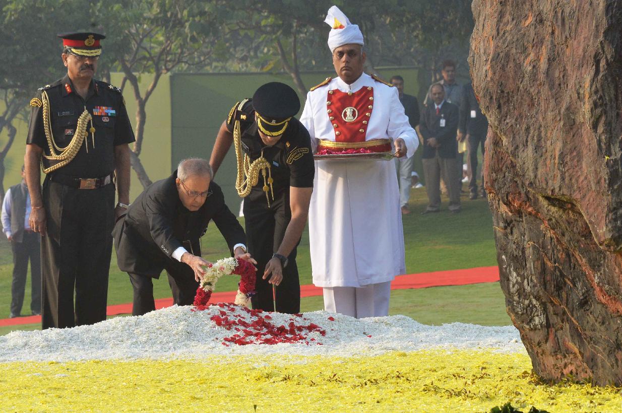 | Caption: | The President of India, Shri Pranab Mukherjee paying floral tributes at the samadhi of the former Prime Minister of India, Late Smt. Indira Gandhi to Commemorate her 98th Birth Anniversary, at Shakti Sthal in Delhi on November 19, 2015. |