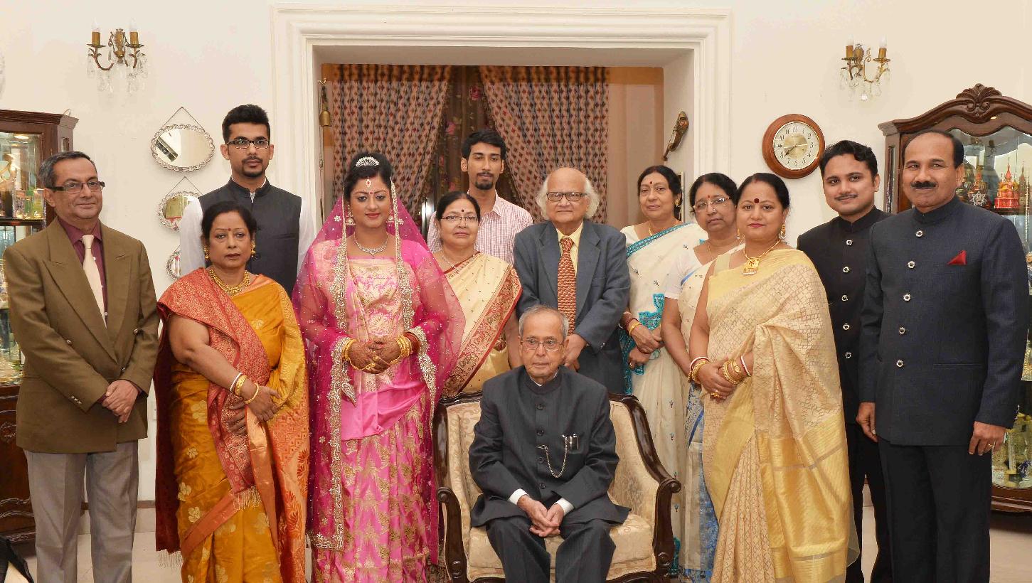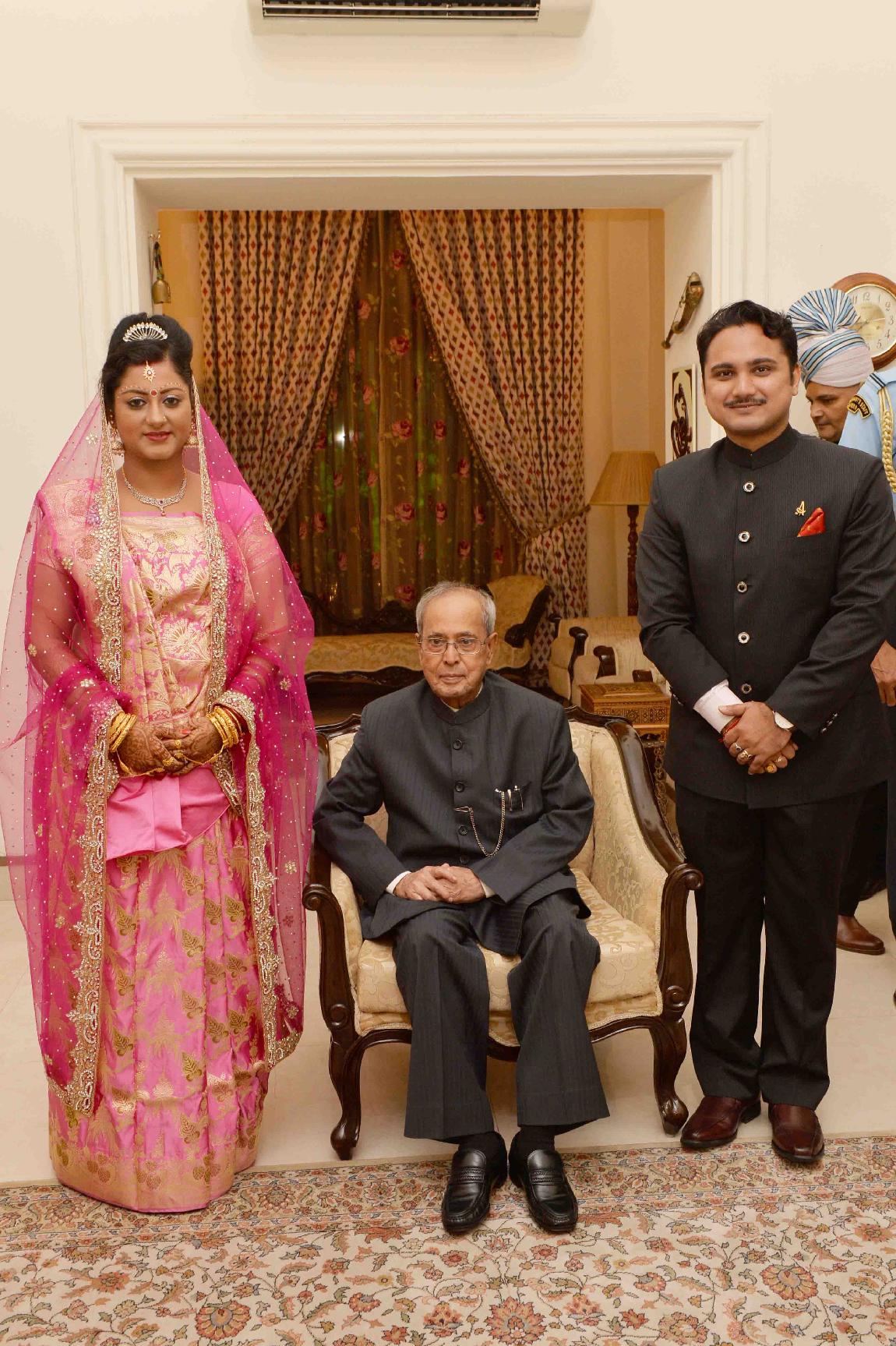| Caption: | The President of India, Shri Pranab Mukherjee attending Wedding Reception of Shri Atanu Raha, son of Air Chief Marshal Arup Raha, Chief of the Air Staff, in New Delhi on November 21, 2015. |