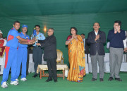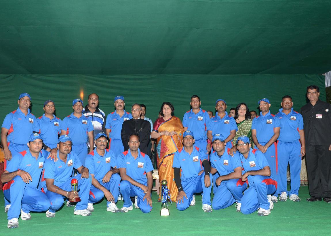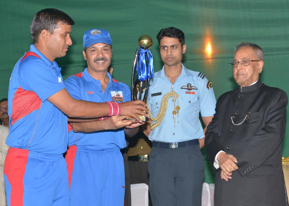 | Caption: | The President of India, Shri Pranab Mukherjee presenting the Trophies and Prizes to the participants of the Rashtrapati Bhavan League T-10 Cricket Tournament 2013 at President Estate of Rashtrapati Bhavan in New Delhi on Nov 14, 2013 |