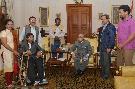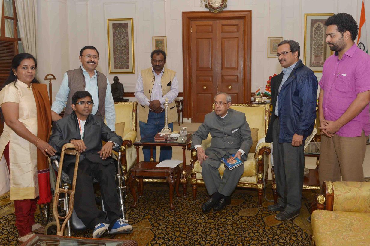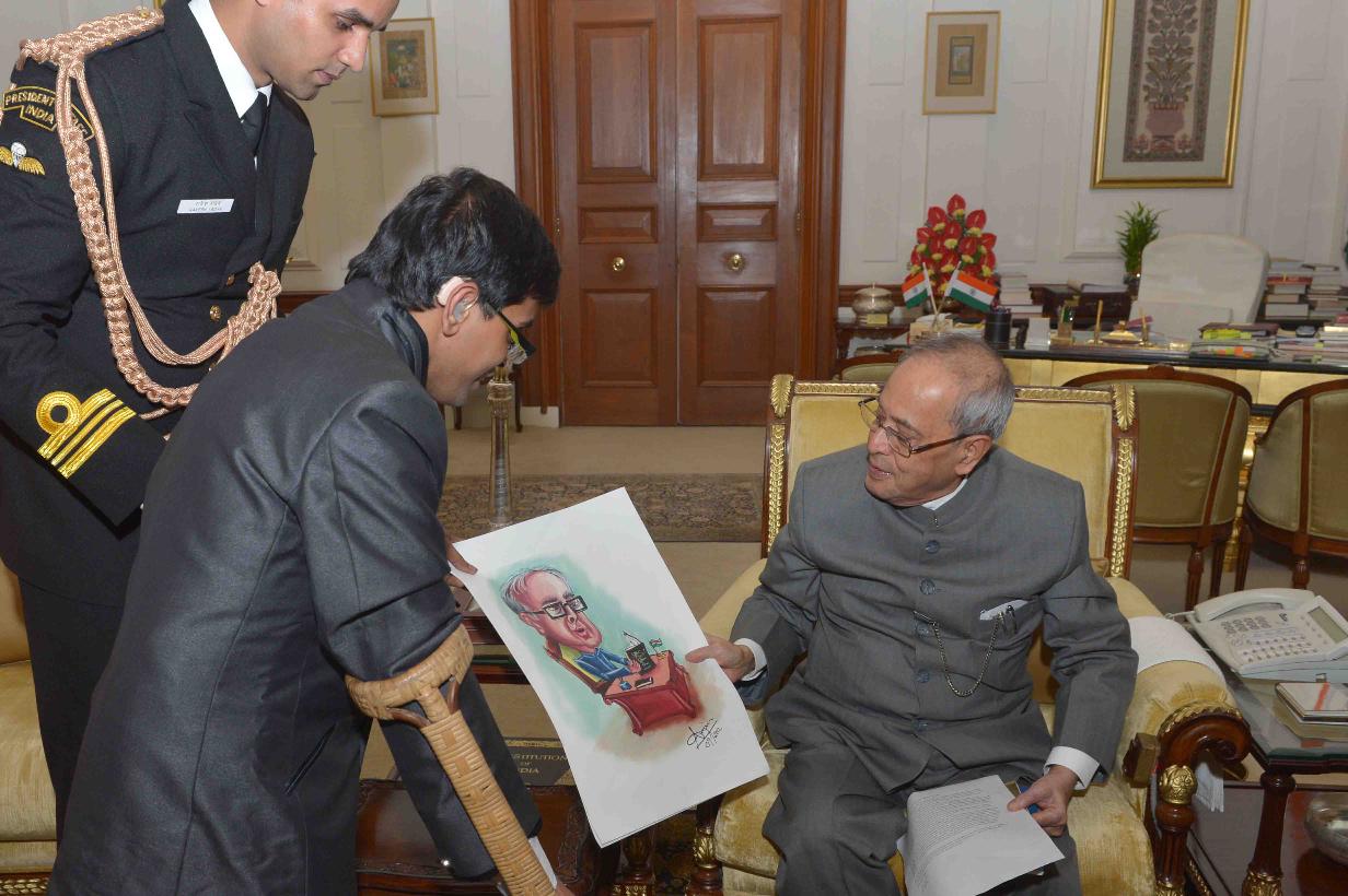 | Caption: | The President of India, Shri Pranab Mukherjee meeting with Shri Anjan Satish alongwith his parents Smt. & Shri Satheesh Kumar from Kochi and cartoonists from Kerela Cartoon Academy, at Rashtrapati Bhavan on December 04, 2015. |