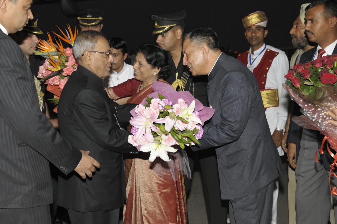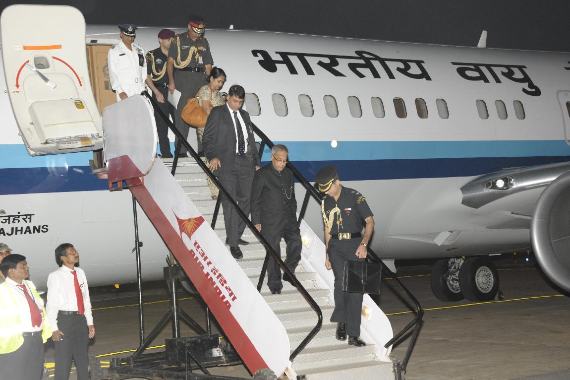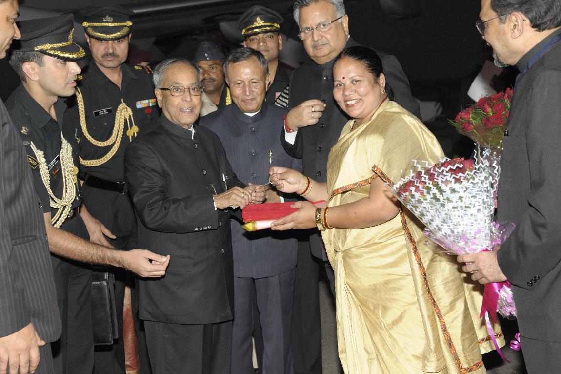 The President of India, Shri Pranab Mukherjee arriving at Raipur Airport on November 06, 2012