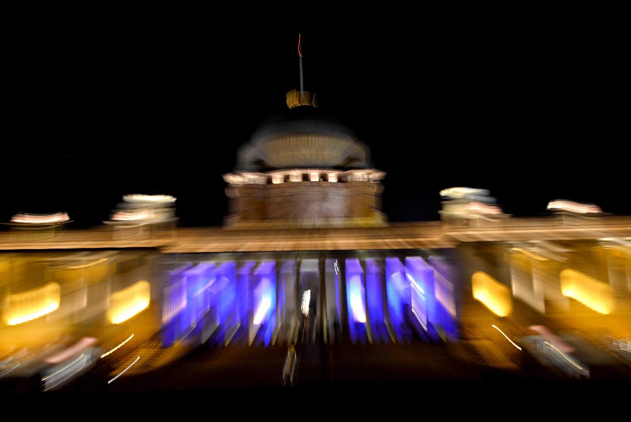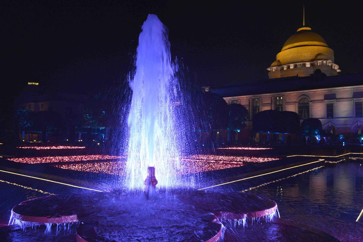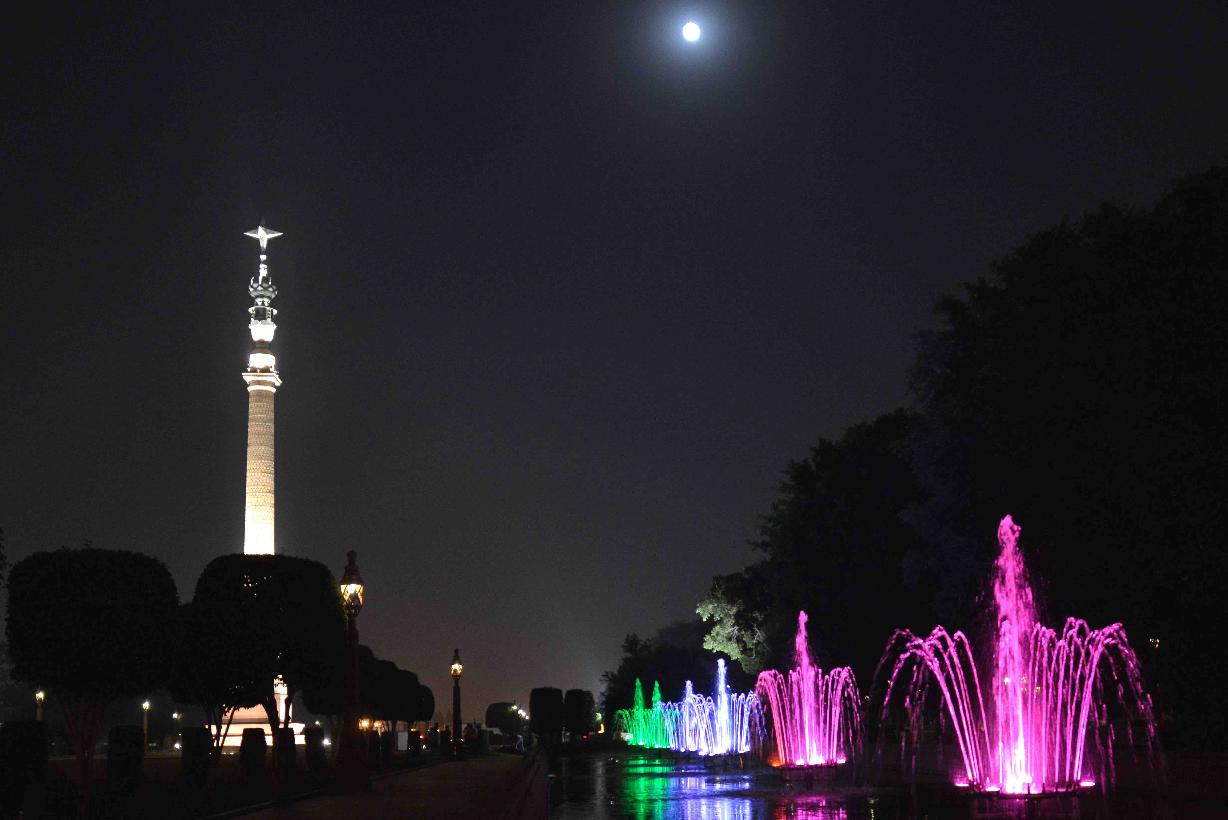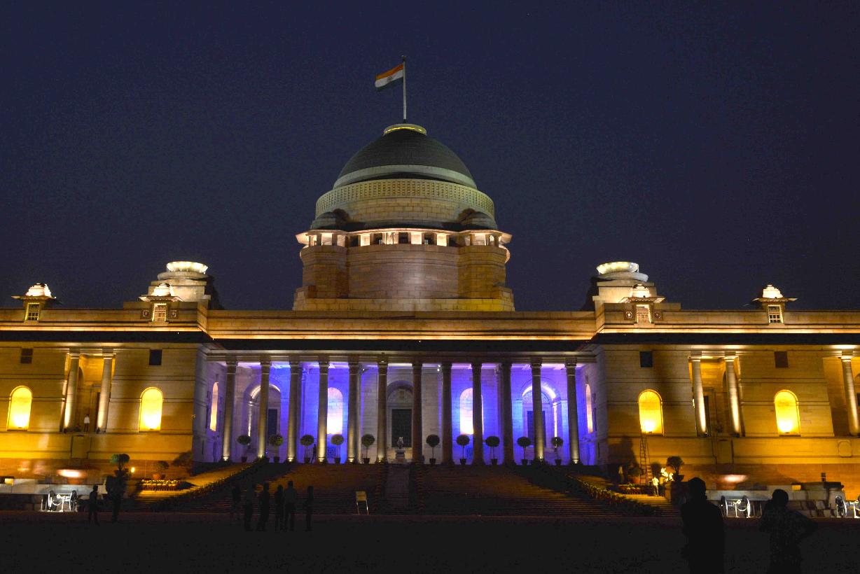 | Caption: | Rashtrapati Bhavan & Jaipur Column draped in colours awaiting visit by dignitaries attending the India Africa Forum Summit. |