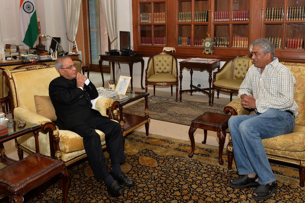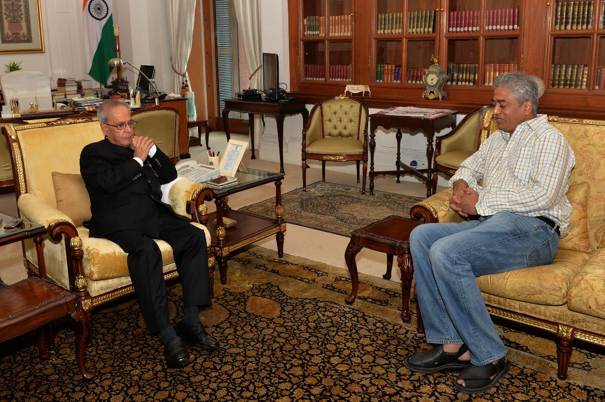 | Caption: | The President of India, Shri Pranab Mukherjee meeting with Shri Rajdeep Sardesai, at Rashtrapati Bhavan, in New Delhi on September 01, 2015. |