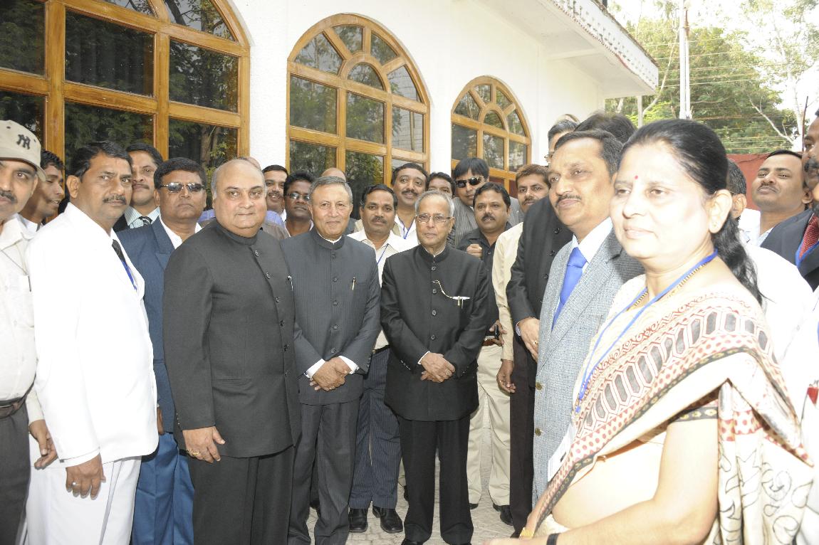 | Caption: | The President of India, Shri Pranab Mukherjee posing For a Group Photograph with Raj Bhavan Staffs on November 07, 2012 |