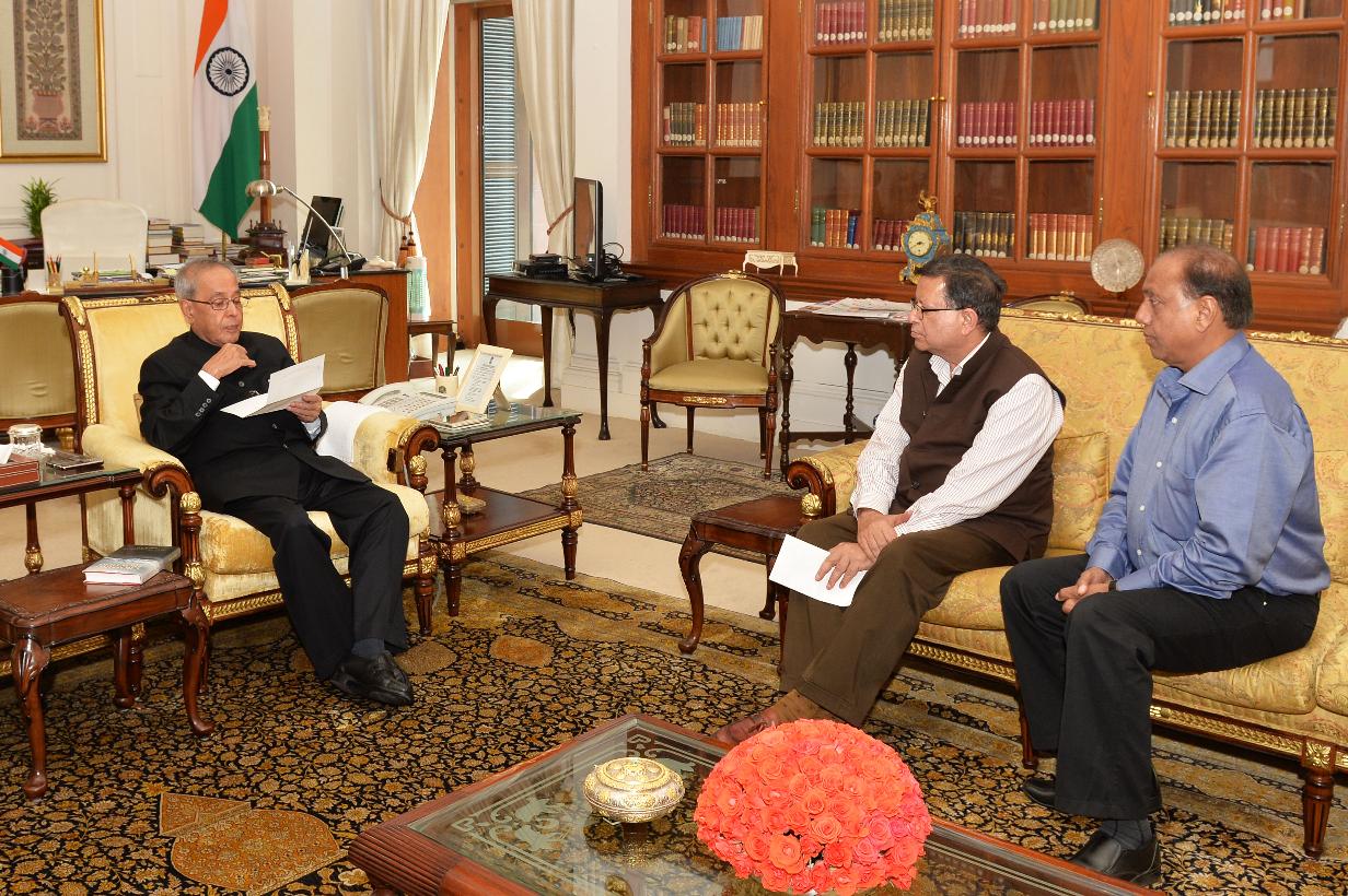 | Caption: | The President of India, Shri Pranab Mukherjee meeting with Shri Dhiraj Bansidhar Gupta and others from Shri Dharmic Leela Committee, at Rashtrapati Bhavan, in New Delhi on September 01, 2015. |