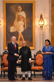 | Caption: | The President of India, Shri Pranab Mukherjee with the Minister of Foreign Affairs of the Republic of Tunisia, Mr. Taïeb Baccouche, on the sidelines of 3rd India Africa Forum Summit, at Rashtrapati Bhavan on October 29, 2015. |