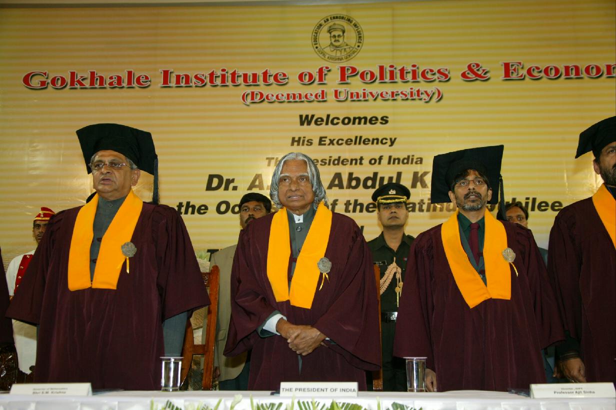 | Caption: | The President of India, Dr A P J Abdul Kalam addressing at the Annual Convocation of Gokhale Institute of Politics and Economics and presenting the Degree to the Students at Pune in Maharashtra on Feb 01, 2005 |