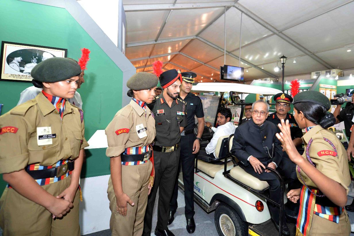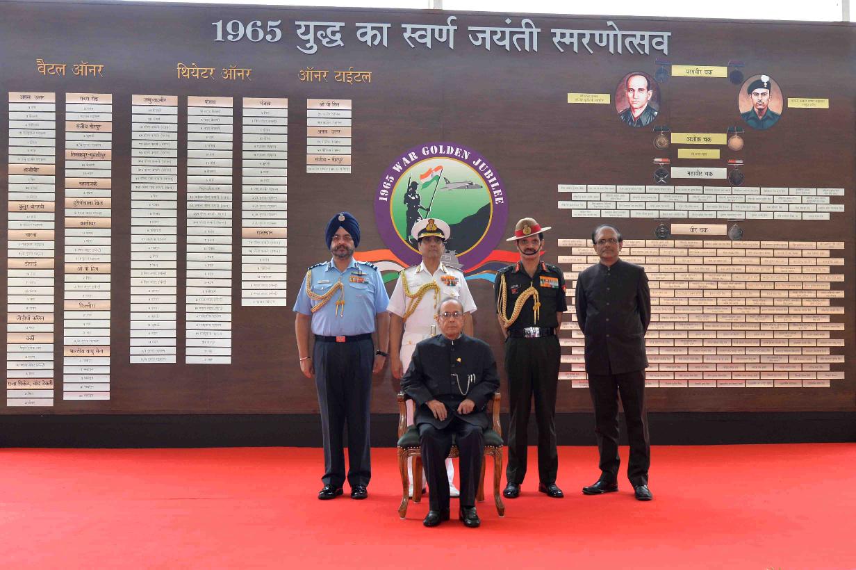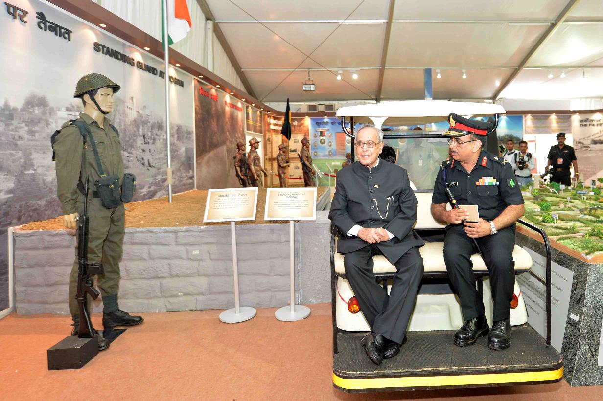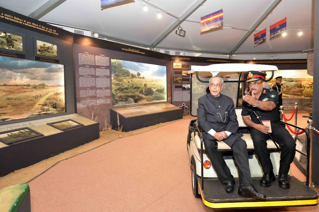 | Caption: | The President of India, Shri Pranab Mukherjee visiting the Commemorative Exhibition being organised on the occasion of the Golden Jubilee of the Indo-Pak War 1965, in New Delhi on September 19, 2015. |