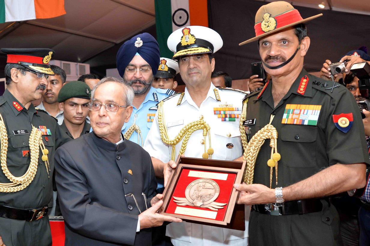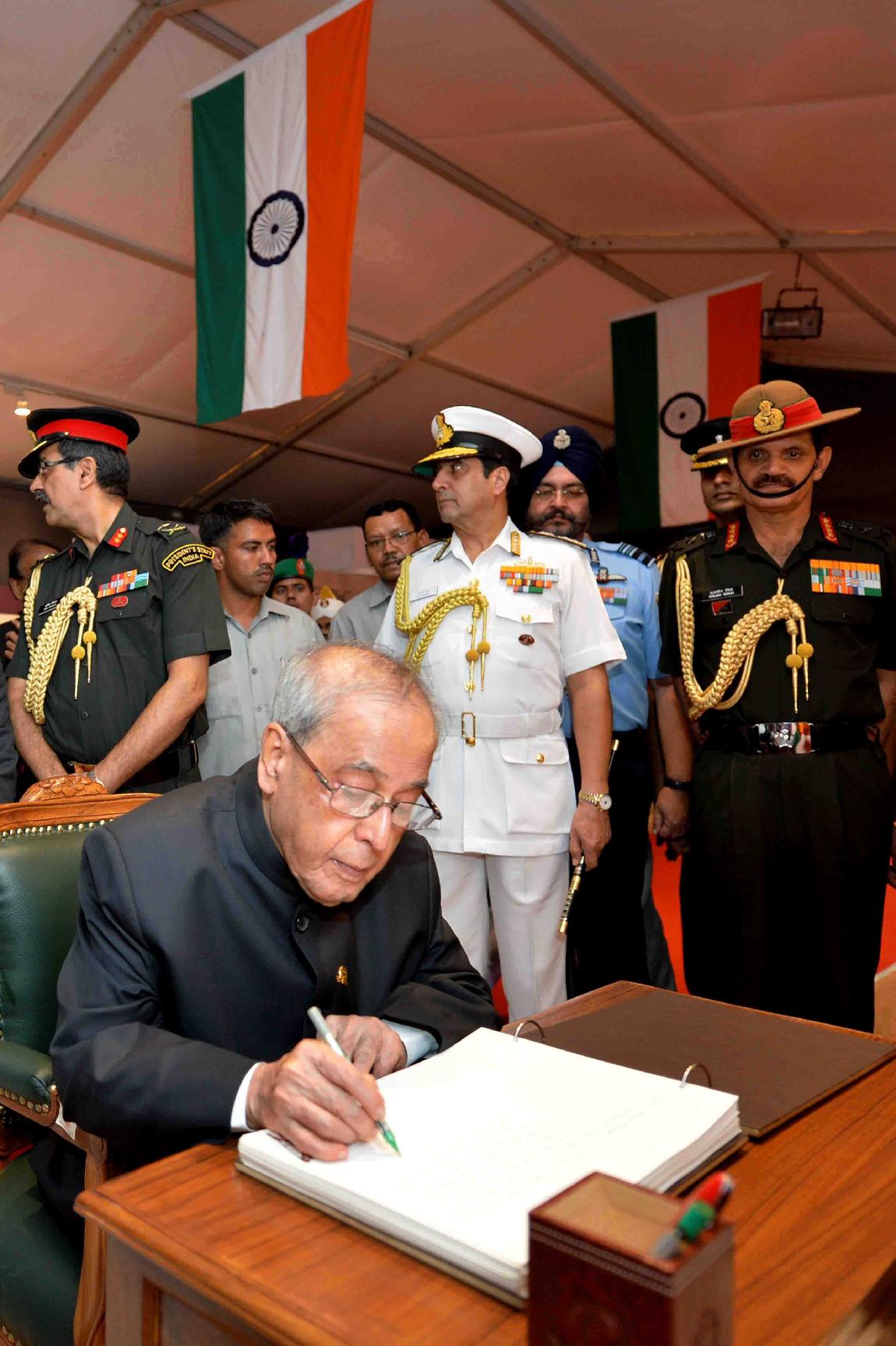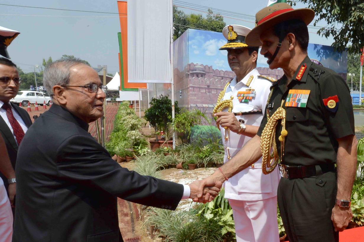 | Caption: | The President of India, Shri Pranab Mukherjee visiting the Commemorative Exhibition being organised on the occasion of the Golden Jubilee of the Indo-Pak War 1965, in New Delhi on September 19, 2015. |