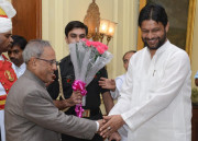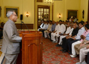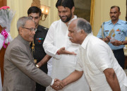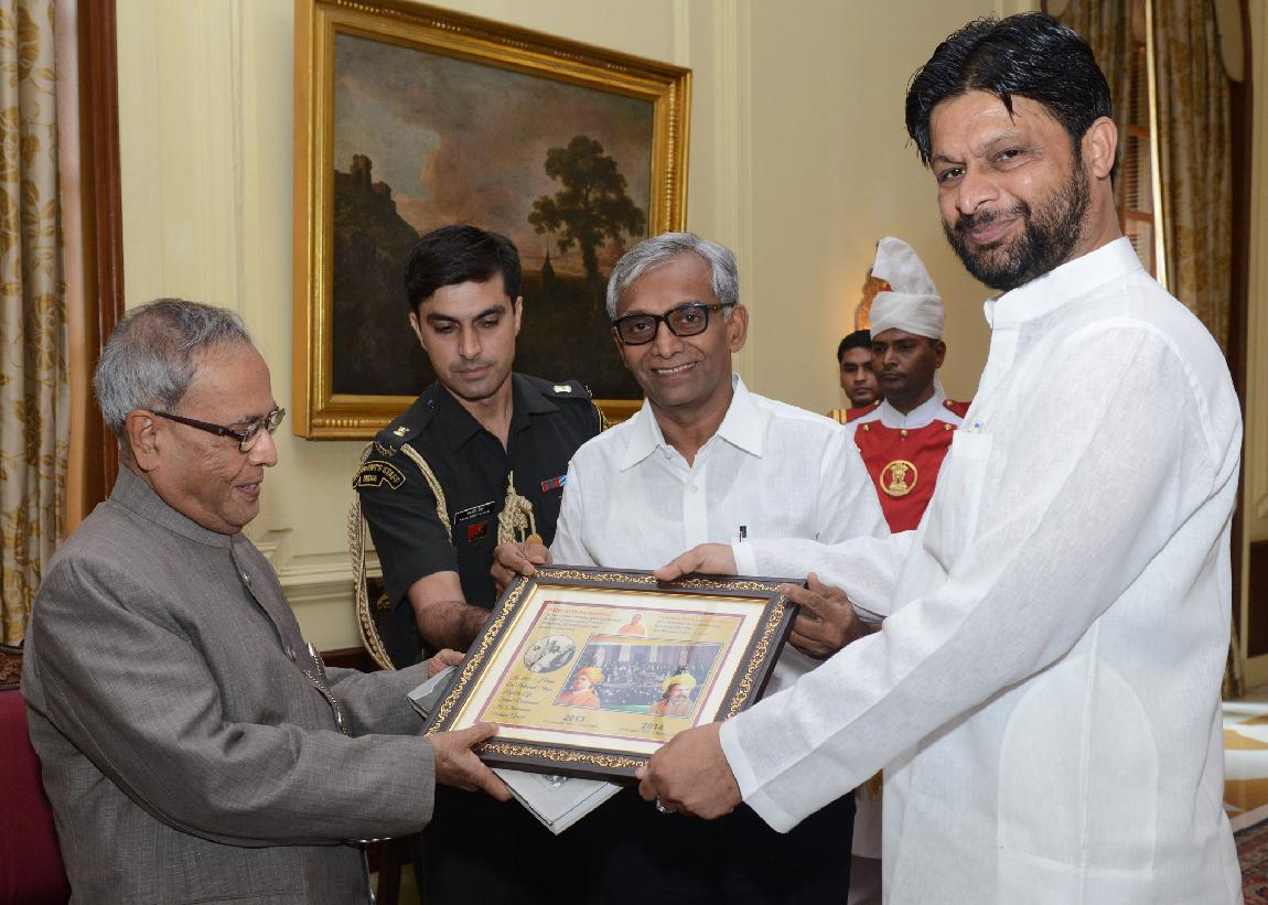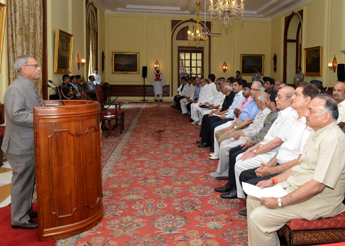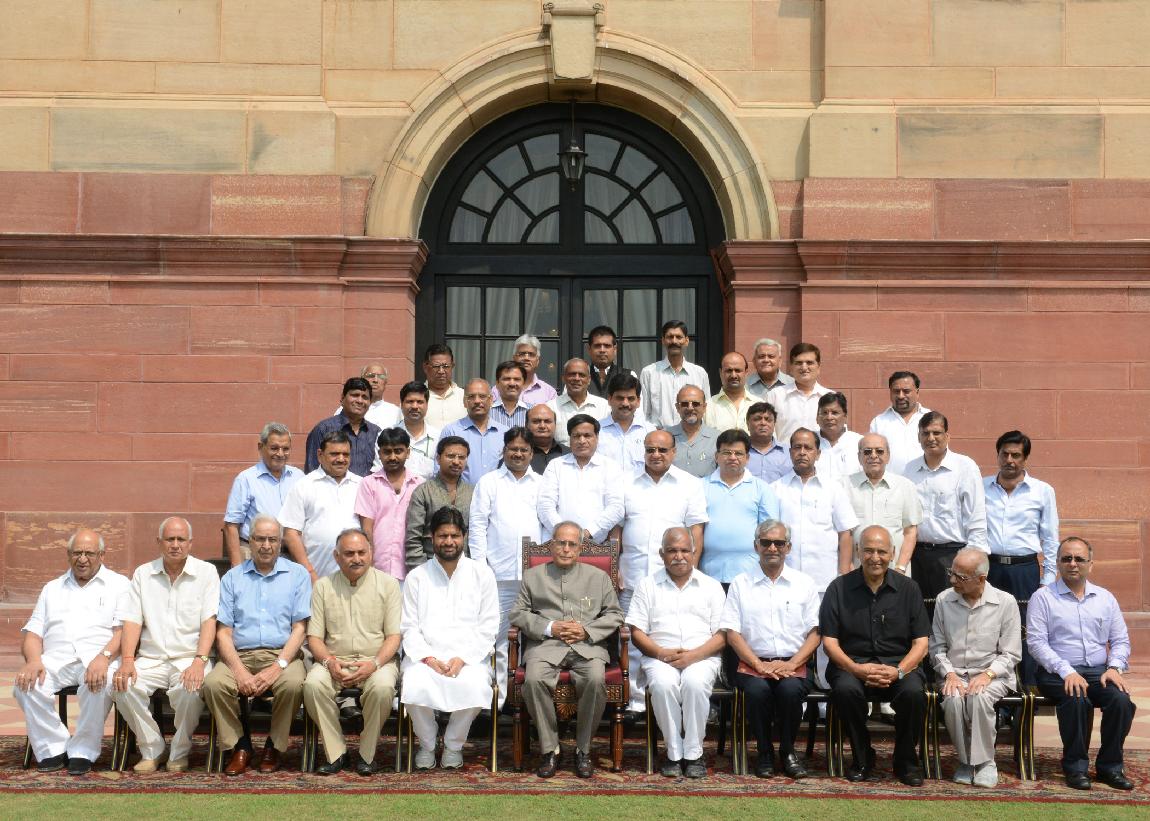 | Caption: | The President of India, Shri Pranab Mukherjee Meeting with Shri Pradeep Jain Aditya , Minister of State for Rural Development alongwith others Delegation from Jain Mahasabha Delhi at Rashtrapati Bhavan in New Delhi on Aug 24, 2013 |