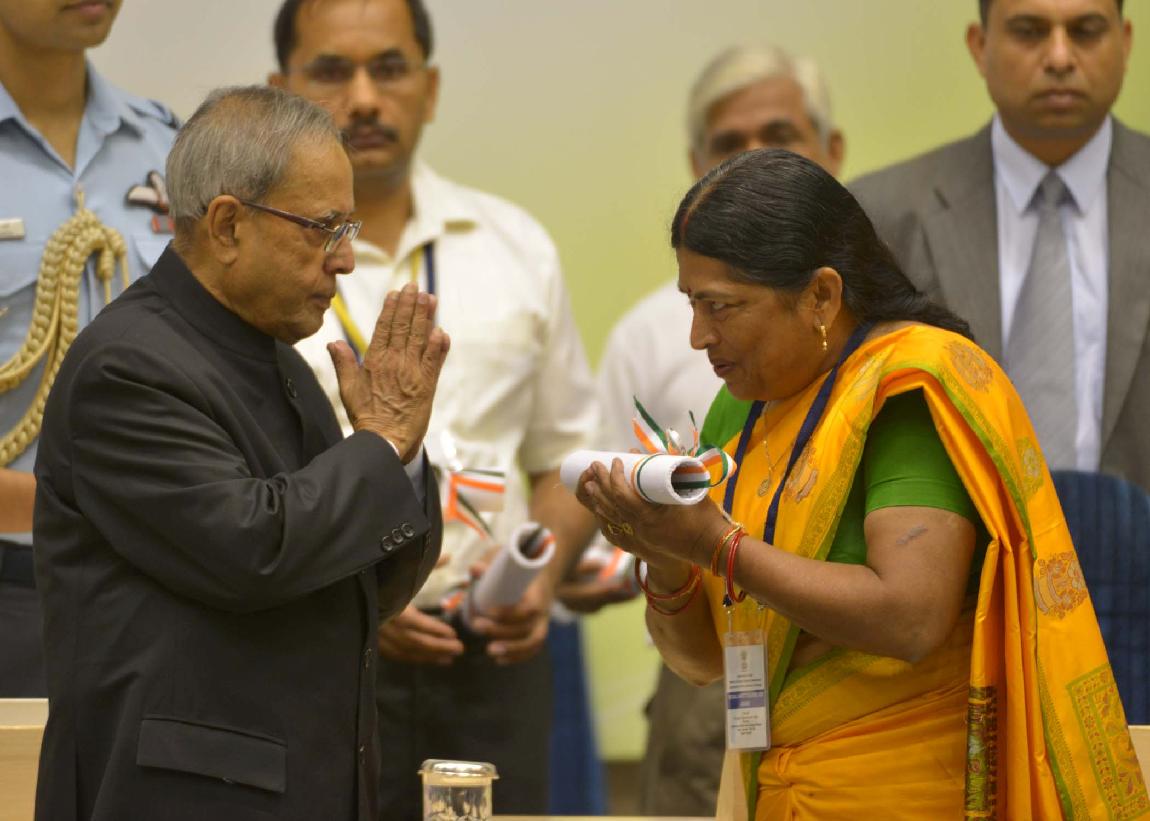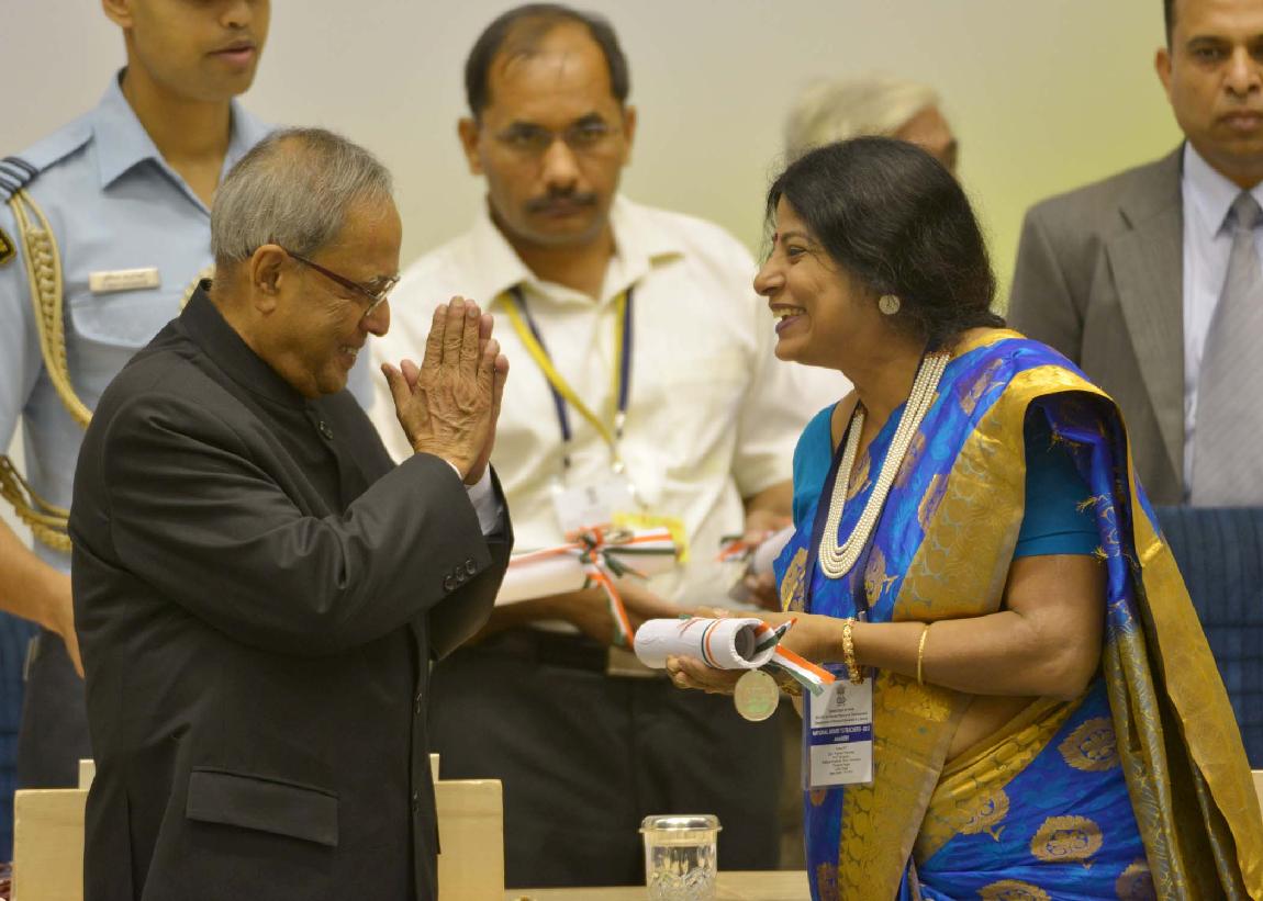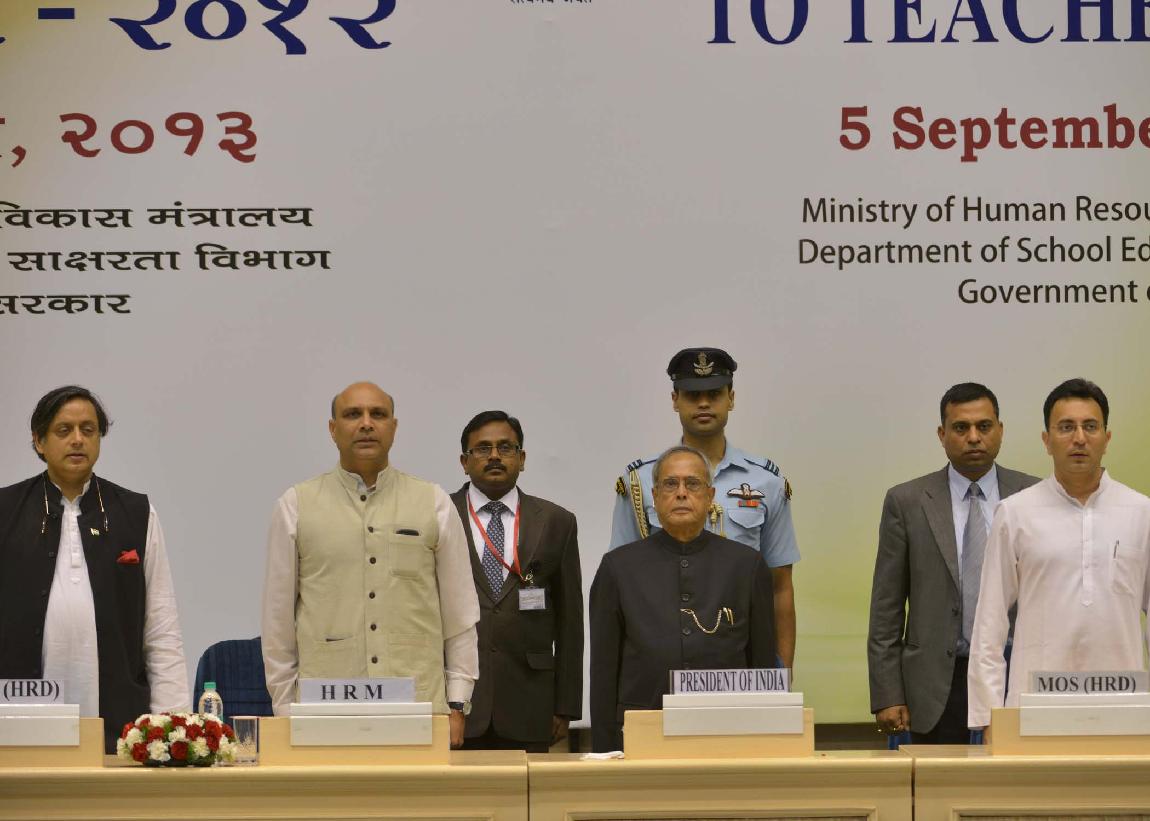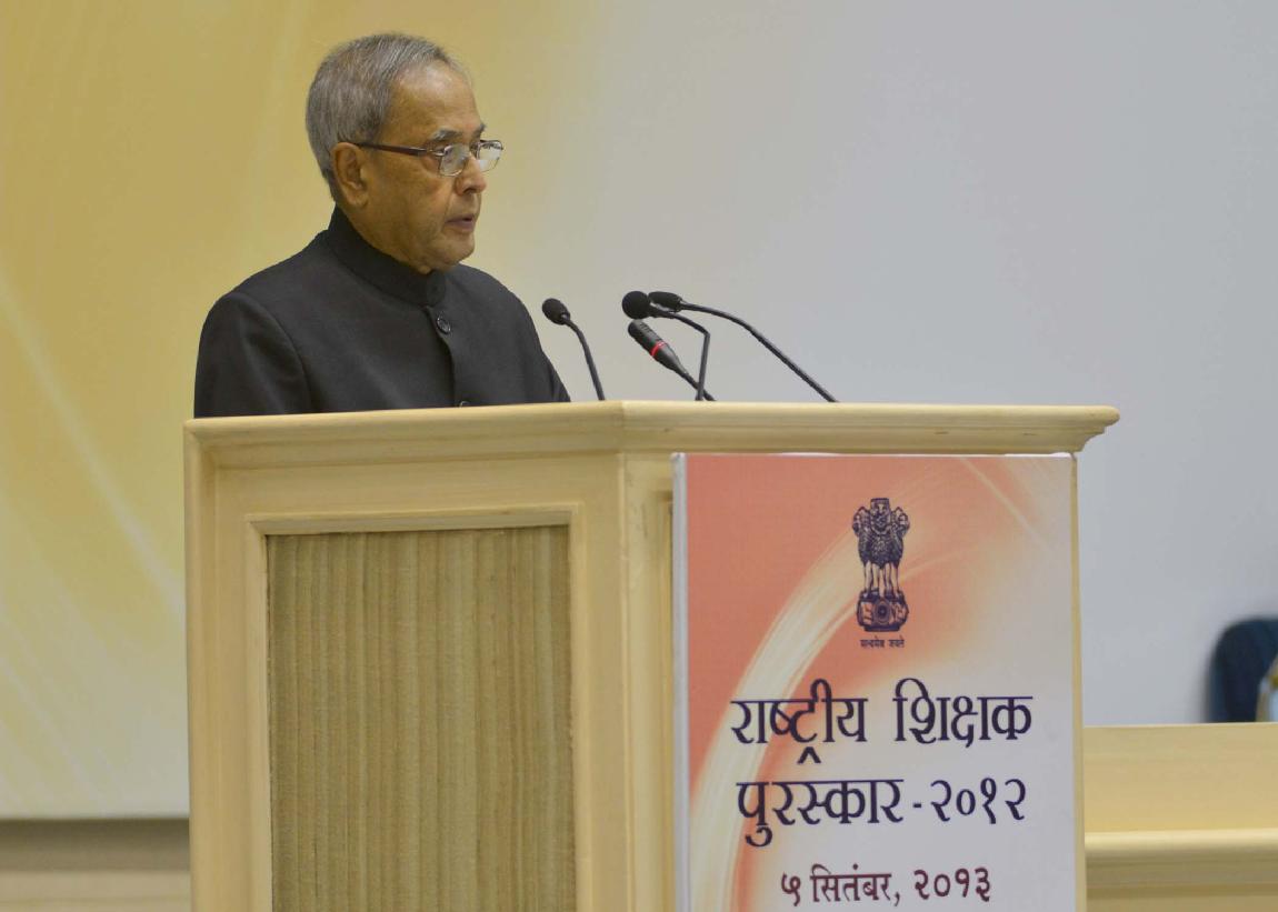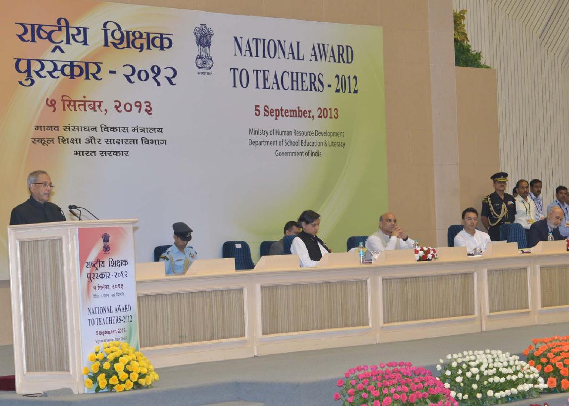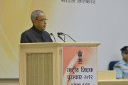 | Caption: | The President of India, Shri Pranab Mukherjee presenting the National Awards to Teachers for the year 2012 on the occasion of Teachers Day at Vigyan Bhavan in New Delhi on Sep 05, 2013 |
