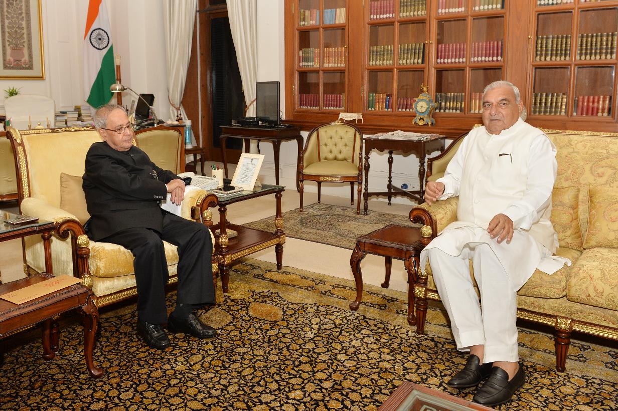 | Caption: | The President of India, Shri Pranab Mukherjee meeting with the former Chief Minister of Haryana, Shri Bhupinder Singh Hooda, at Rashtrapati Bhavan, in New Delhi on September 18, 2015. |