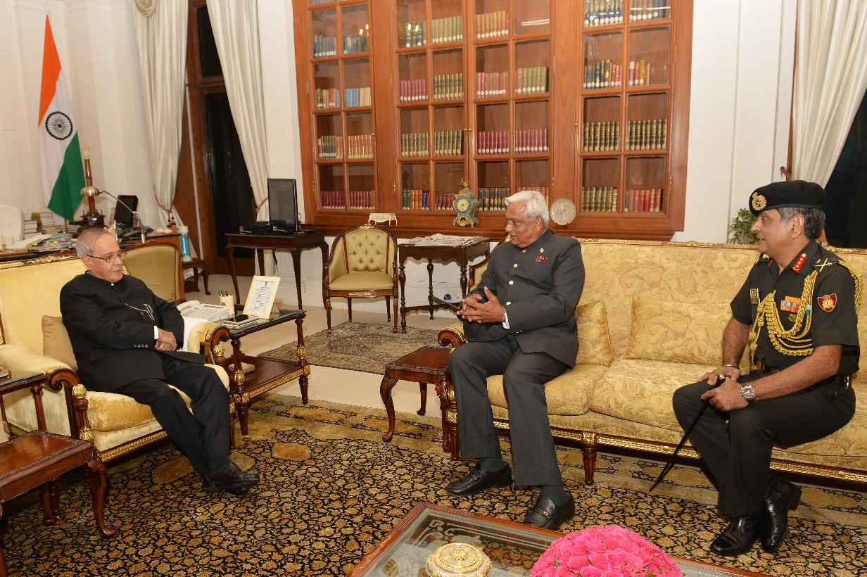 | Caption: | The President of India, Shri Pranab Mukherjee meeting with Lt. Gen. Amit Sharma, Commander-in-Chief, Headquarters Strategic Forces Command, at Rashtrapati Bhavan, in New Delhi on September 18, 2015. |