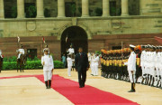 | Caption: | The President of India, Dr A P J Abdul Kalam at the Ceremonial Reception of the President of the Co-operative Republic of Guyana, HE Mr Bharrat Jagdeo at the Forecourt of Rashtrapati Bhavan in New Delhi on Aug 25, 2003 |