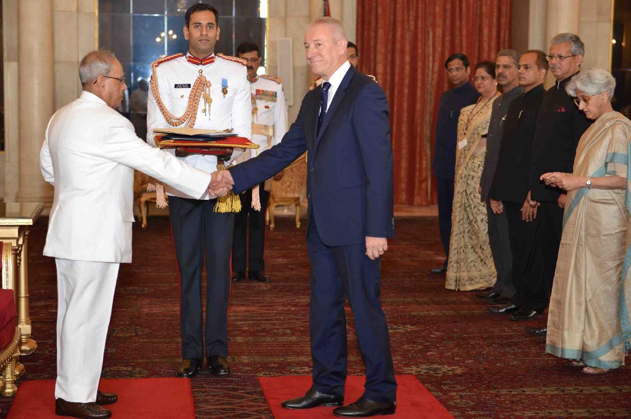| Caption: | The Ambassador-designate of the Republic of Slovenia, HE Mr. Jozef Drofenik presenting his Credentials to the President of India, Shri Pranab Mukherjee, at Rashtrapati Bhavan, in New Delhi on November 13, 2015. |