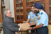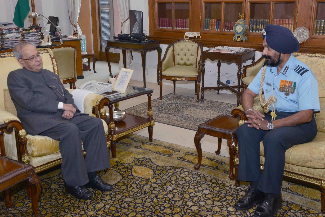 | Caption: | The President of India, Shri Pranab Mukherjee meeting with Air Marshal Jagjeet Singh, AOC-in-C, MC (Nagpur) & Hony ADC to the President, at Rashtrapati Bhavan on November 20, 2015. |