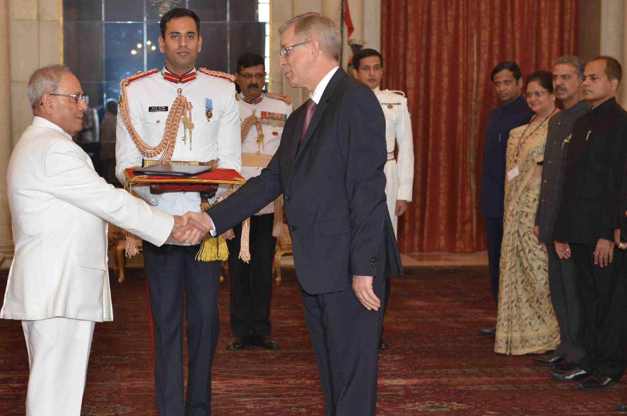 | Caption: | The Ambassador-designate of the Delegation of European Union, HE Mr. Tomasz Kozlowski presenting his Credentials to the President of India, Shri Pranab Mukherjee, at Rashtrapati Bhavan, in New Delhi on November 13, 2015. |
