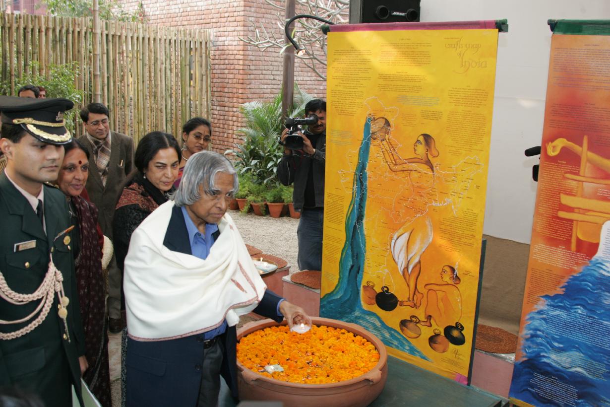 | Caption: | The President of India, Dr A P J Abdul Kalam inaugurating and Exhibition the India Crafts Journey organized by the Dastkari Haat Samiti at Dilli Haat opposite INA Market in New Delhi on Feb 17, 2005 |