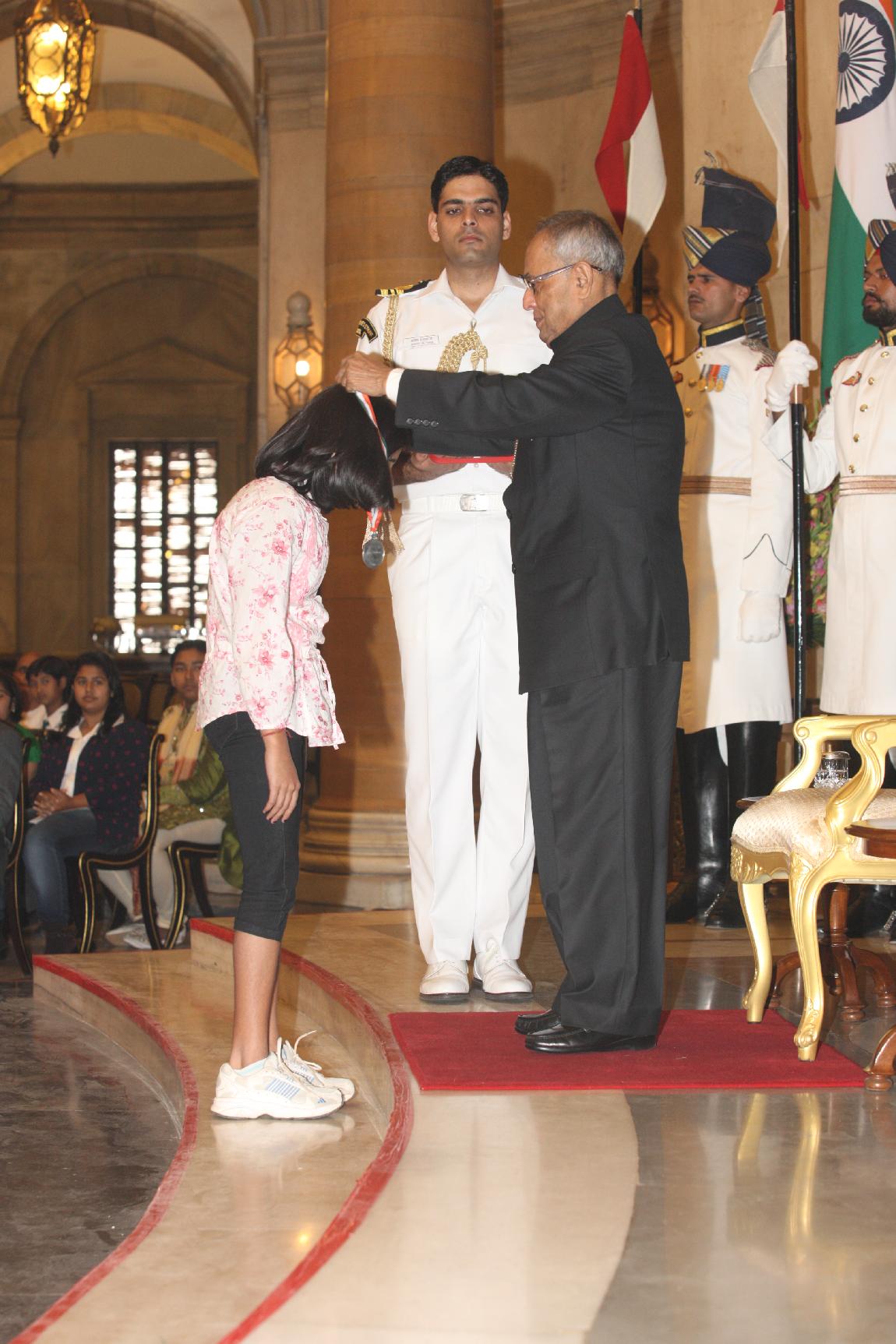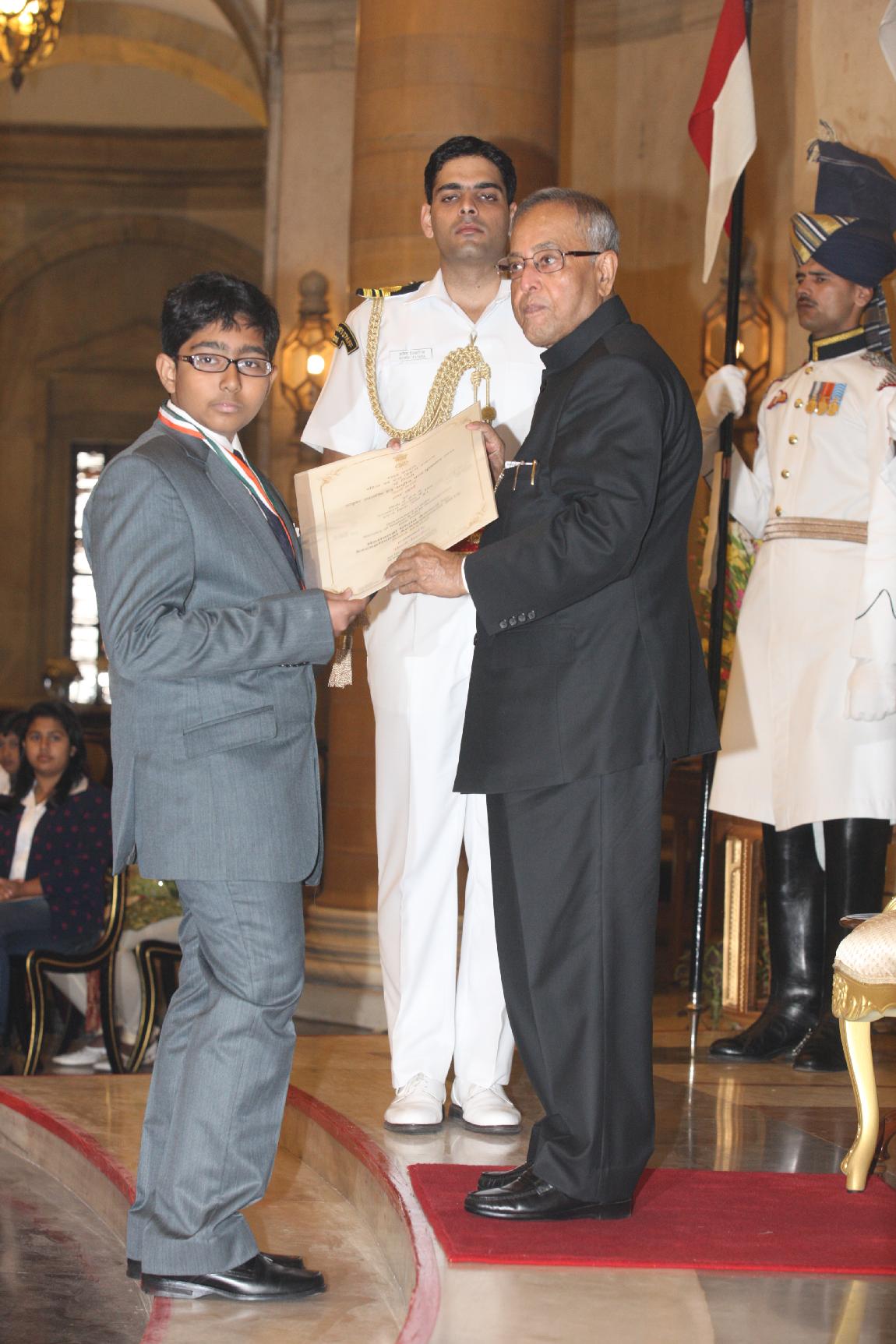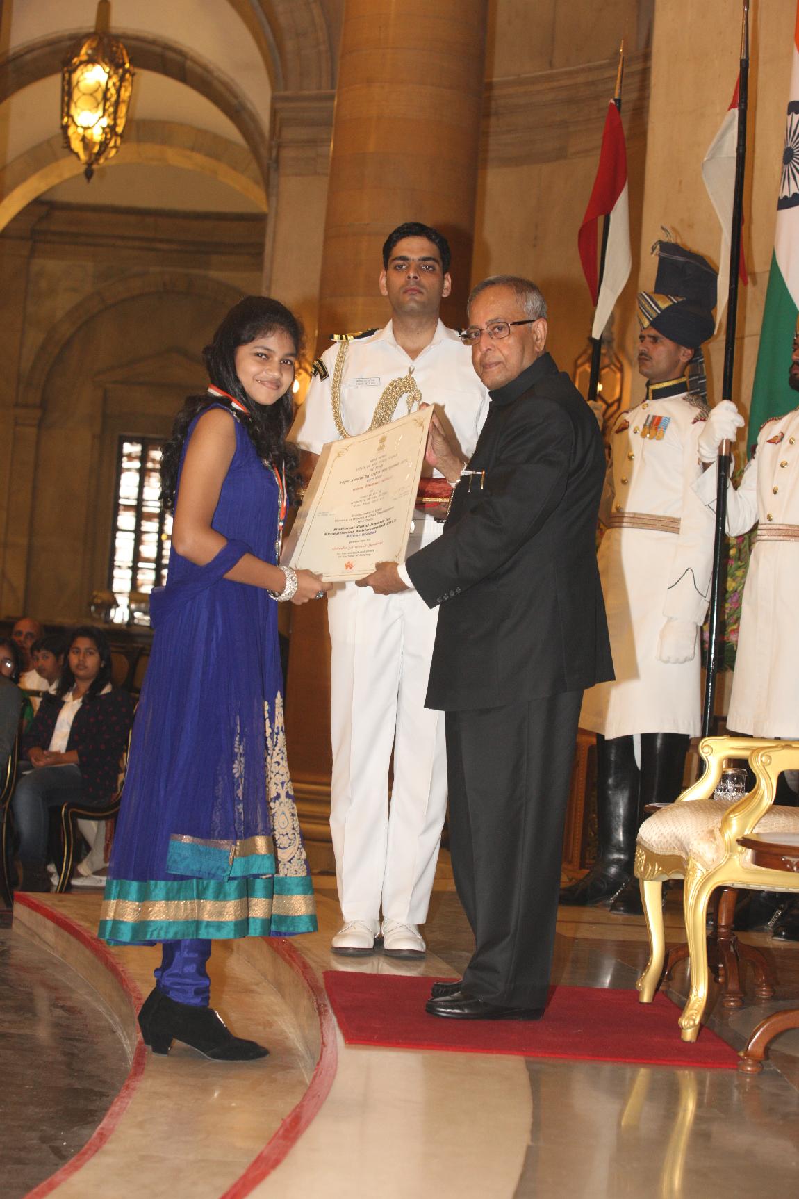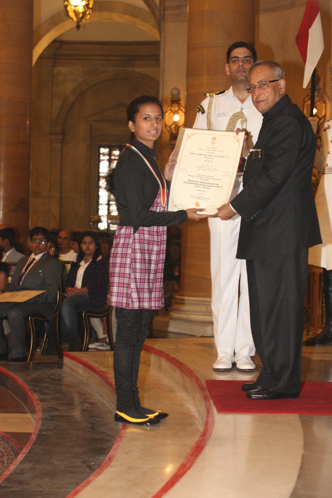 | Caption: | The President of India, Shri Pranab Mukherjee presenting National Child Award for Exceptional Achievement National Awards for Childrens Day on November 14, 2012 |