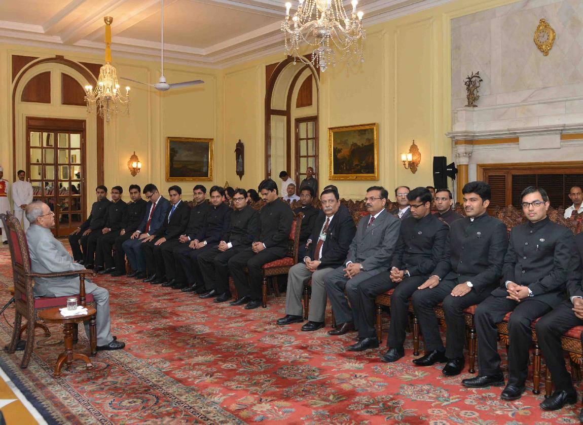 | Caption: | The President of India, Shri Pranab Mukherjee meeting with the Probationers of Indian Defence Accounts Service(DAS) 2013 & 2014 Batch, at Rashtrapati Bhavan, in New Delhi on November 10, 2015. |
