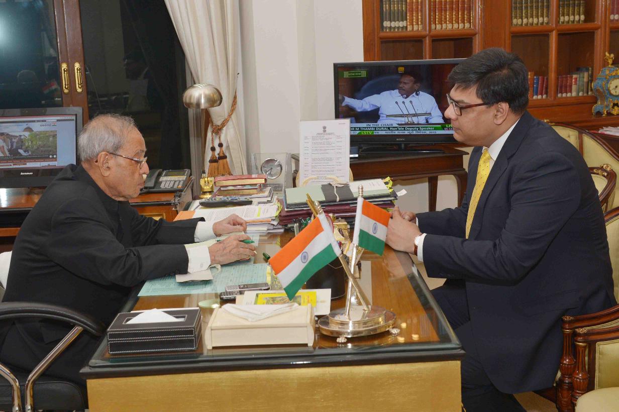 | Caption: | The President of India, Shri Pranab Mukherjee meeting with Shri Arindam Ghosh from Kolkata, at Rashtrapati Bhavan on December 03, 2015. |