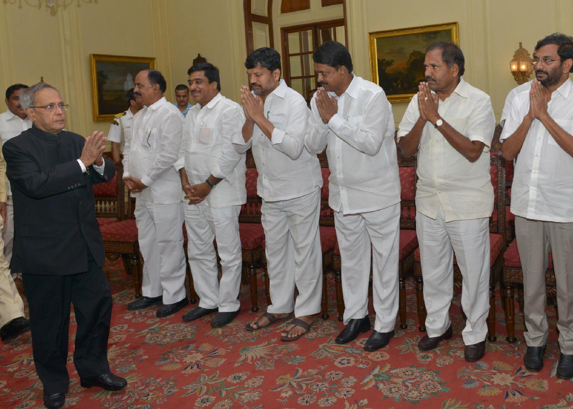 | Caption: | The President of India, Shri Pranab Mukherjee interacting with the MPs & MLAs from Telugu Desam Party led by Shri N Chandrababu Naidu, former Chief Minister of Andhra Pradesh at Rashtrapati Bhavan in New Delhi on Sep 21, 2013 |
