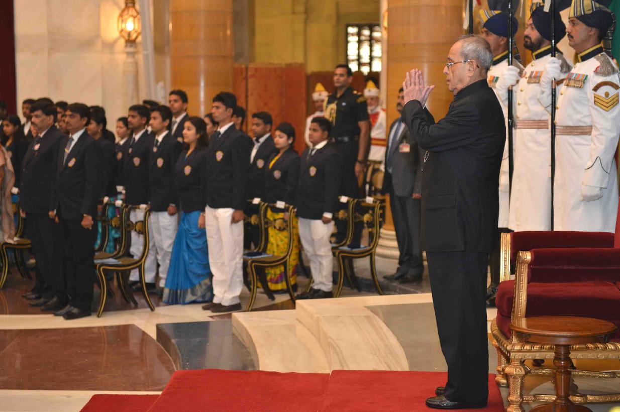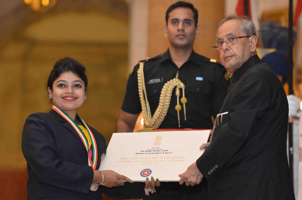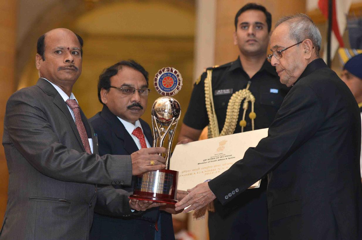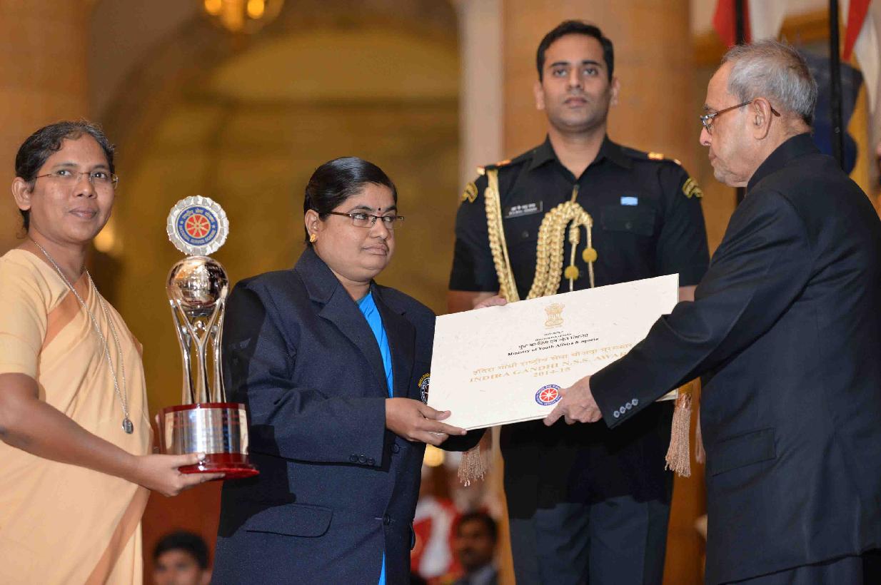 | Caption: | The President of India, Shri Pranab Mukherjee presenting the Indira Gandhi National Service Scheme Awards for 2014-2015, at Rashtrapati Bhavan on November 19, 2015. |