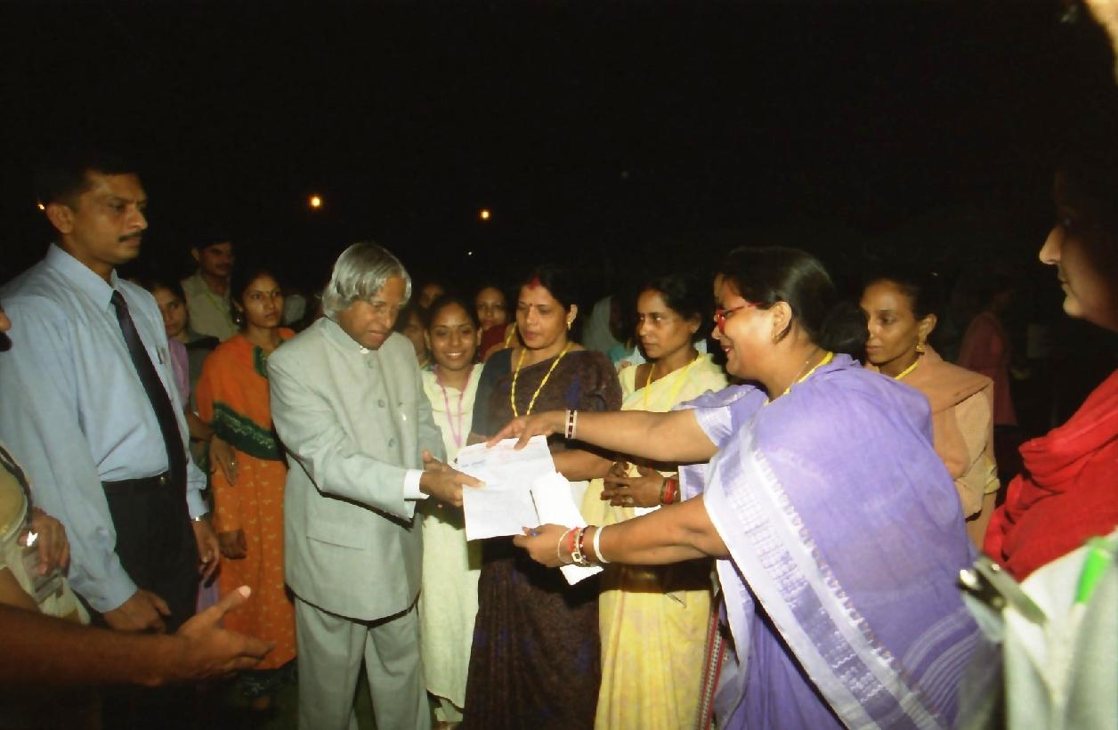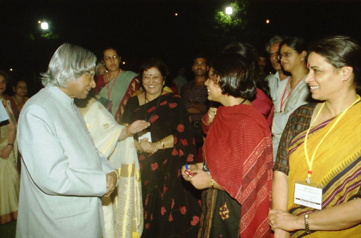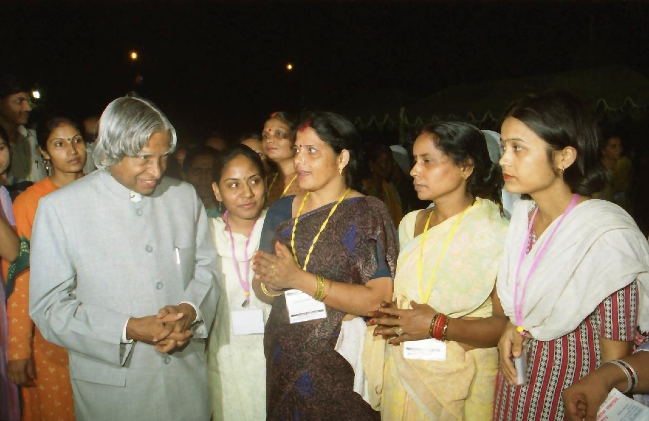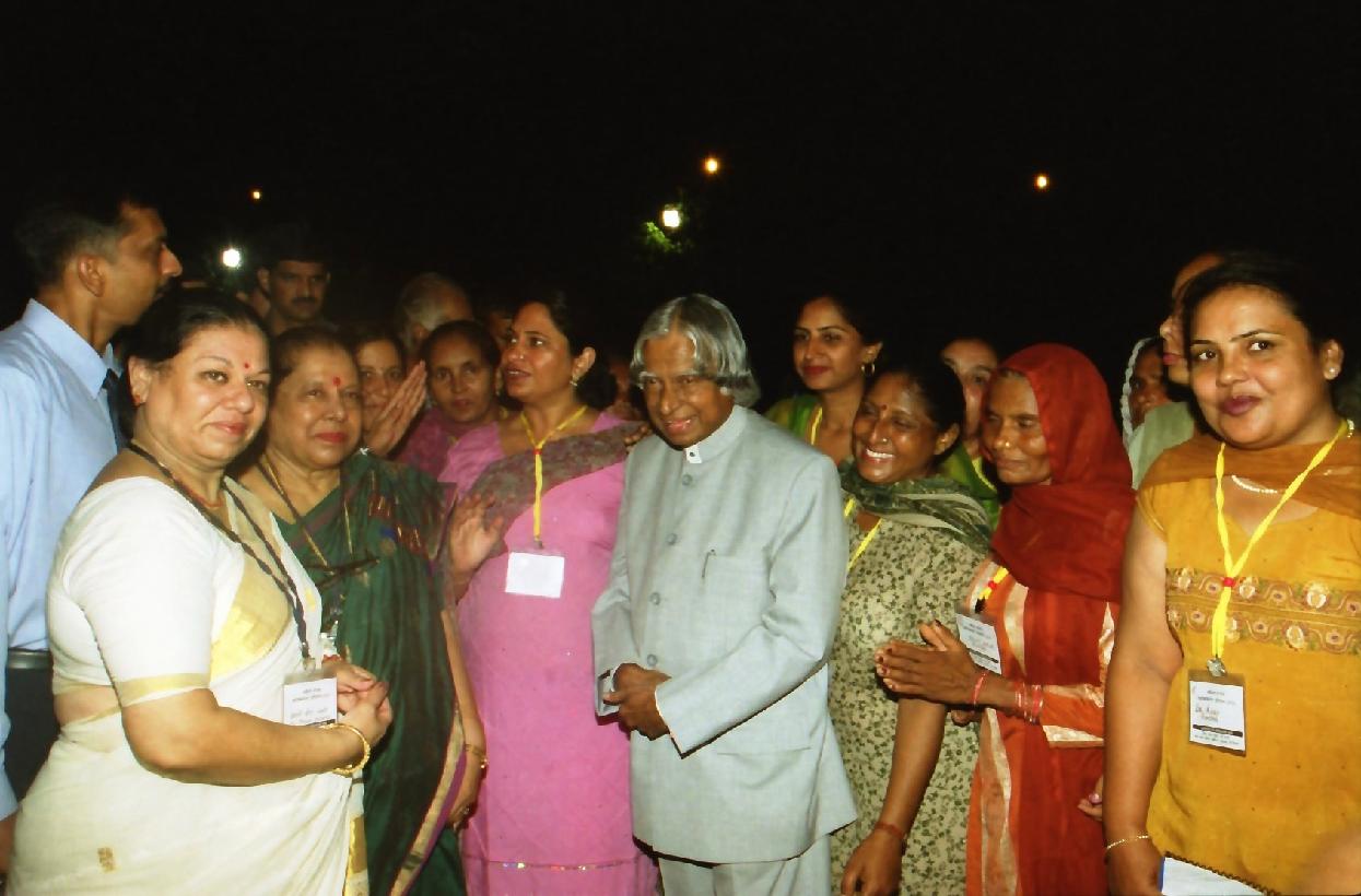 | Caption: | The Participants of the Workshop for Women Panchayat Sarpanches organized by the Guild of Service calling on the President of India, Dr A P J Abdul Kalam at the Central Lawn of Rashtrapati Bhavan on Aug 28, 2003 |