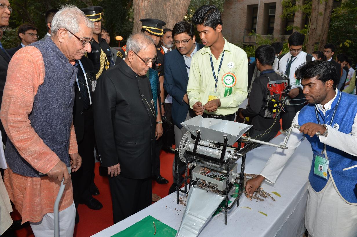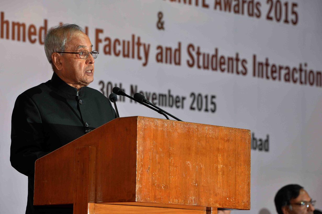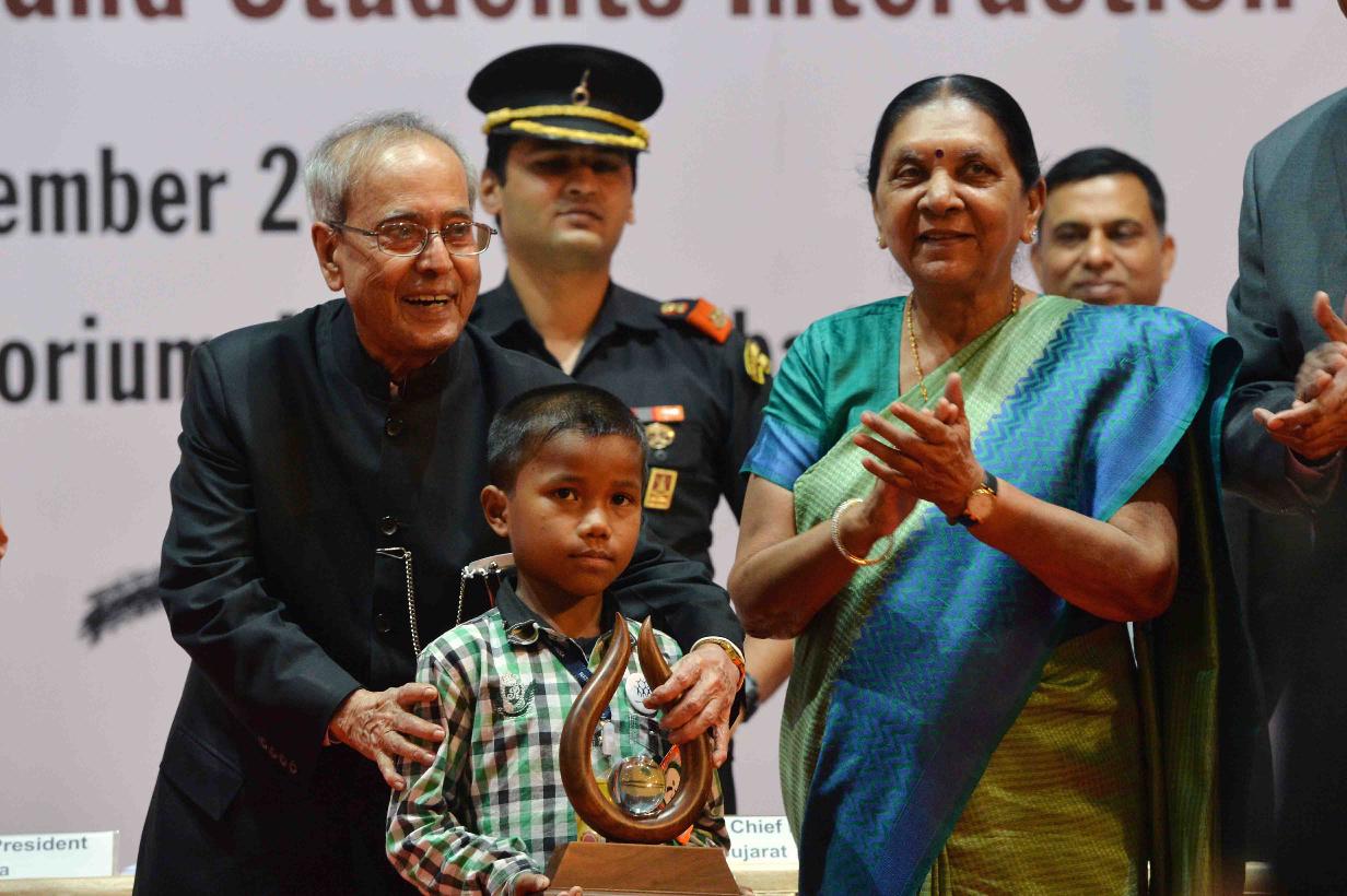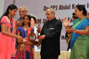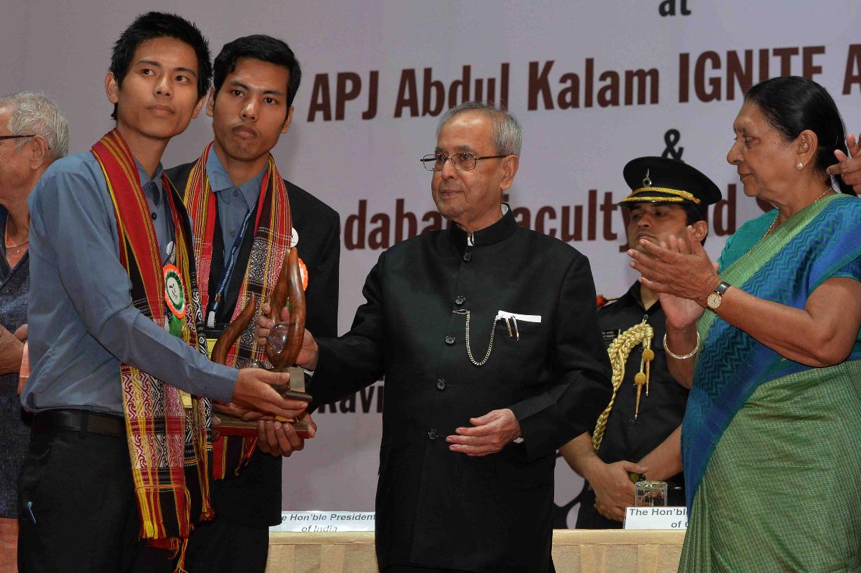 | Caption: | The President of India, Shri Pranab Mukherjee presenting Dr. APJ Abdul Kalam IGNITE Awards- 2015 to creative children, at IIM, Ahmedabad, Gujarat on November 30, 2015. |