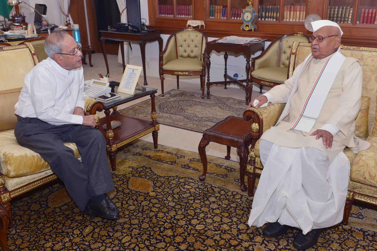 | Caption: | The President of India, Shri Pranab Mukherjee meeting with the Governor of Madhya Pradesh, Shri Ram Naresh Yadav, at Rashtrapati Bhavan, in New Delhi on November 03, 2015. |