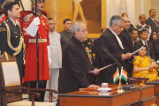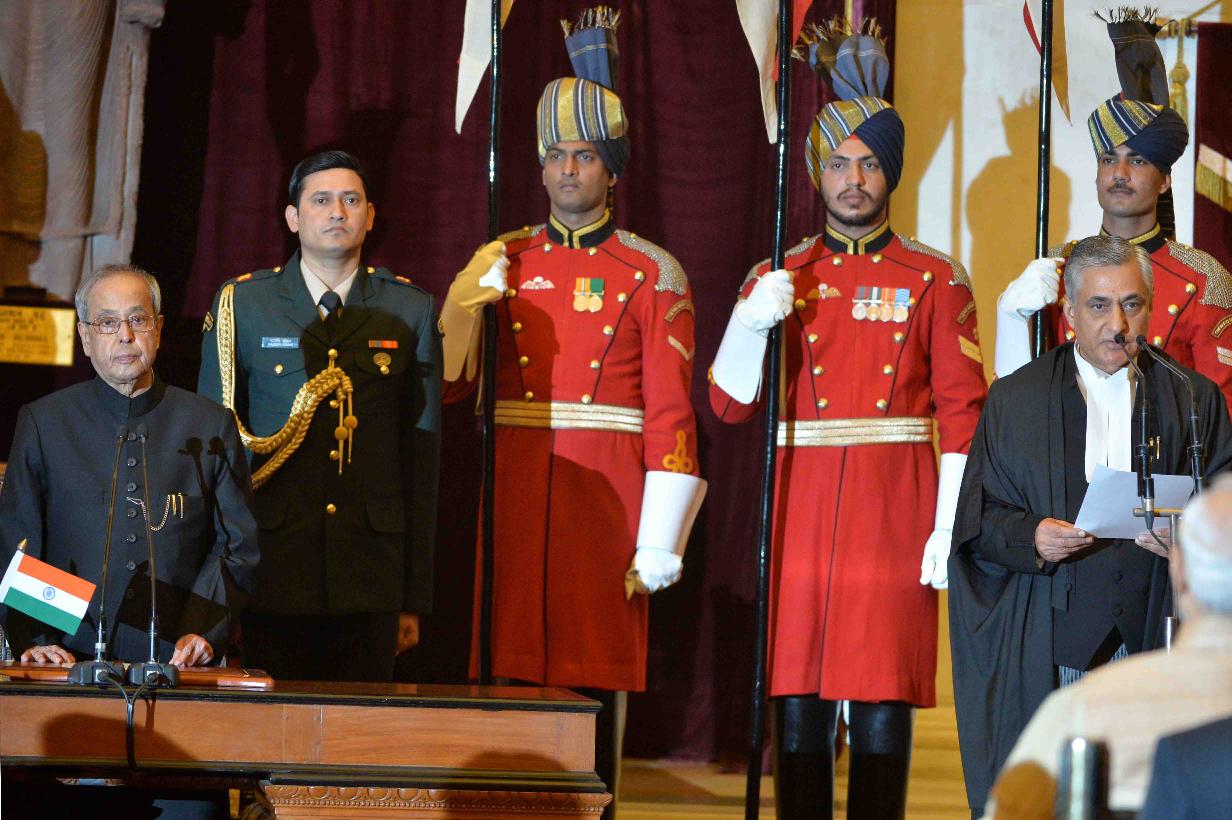 | Caption: | The President of India, Shri Pranab Mukherjee administrating the oath to Shri Justice T.S. Thakur as Chief Justice of India, at a Swearing-in Ceremony, at Rashtrapati Bhavan on December 03, 2015. |