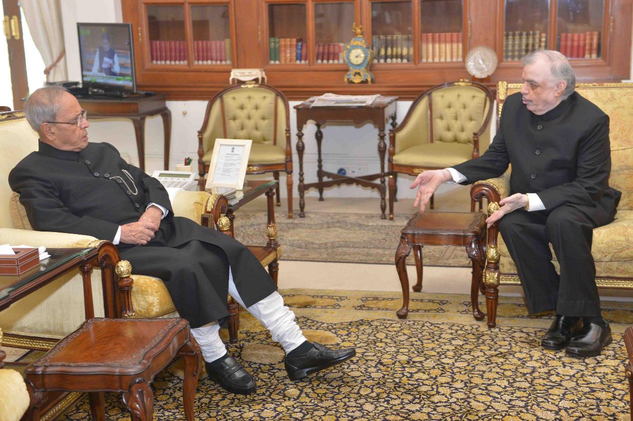 | Caption: | The President of India, Shri Pranab Mukherjee meeting with Shri Justice P. Sathasivam, Governor of Kerala, at Rashtrapati Bhavan on December 03, 2015. |