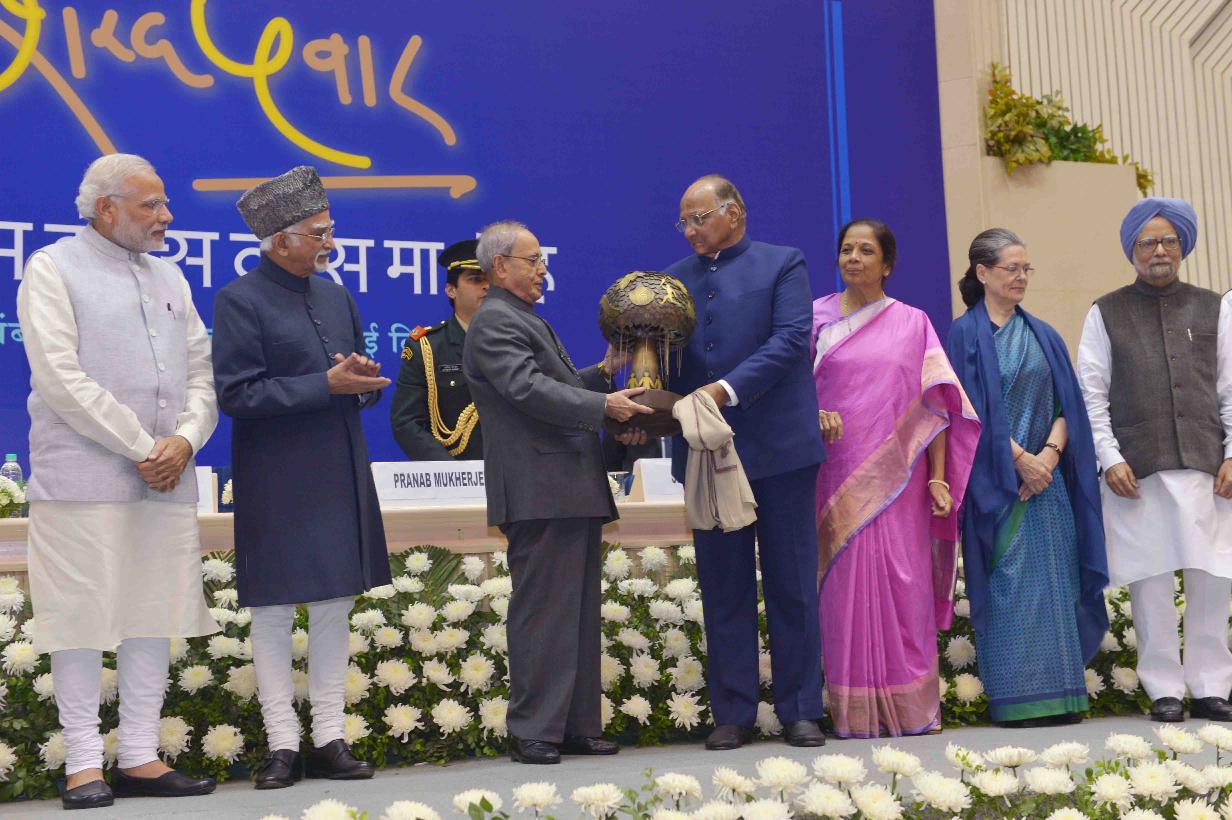 | Caption: | The President of India, Shri Pranab Mukherjee attending the 75th birthday celebrations of Shri Sharad Pawar, Member of Parliament and President of the Nationalist Congress Party, in New Delhi on December 10, 2015. |