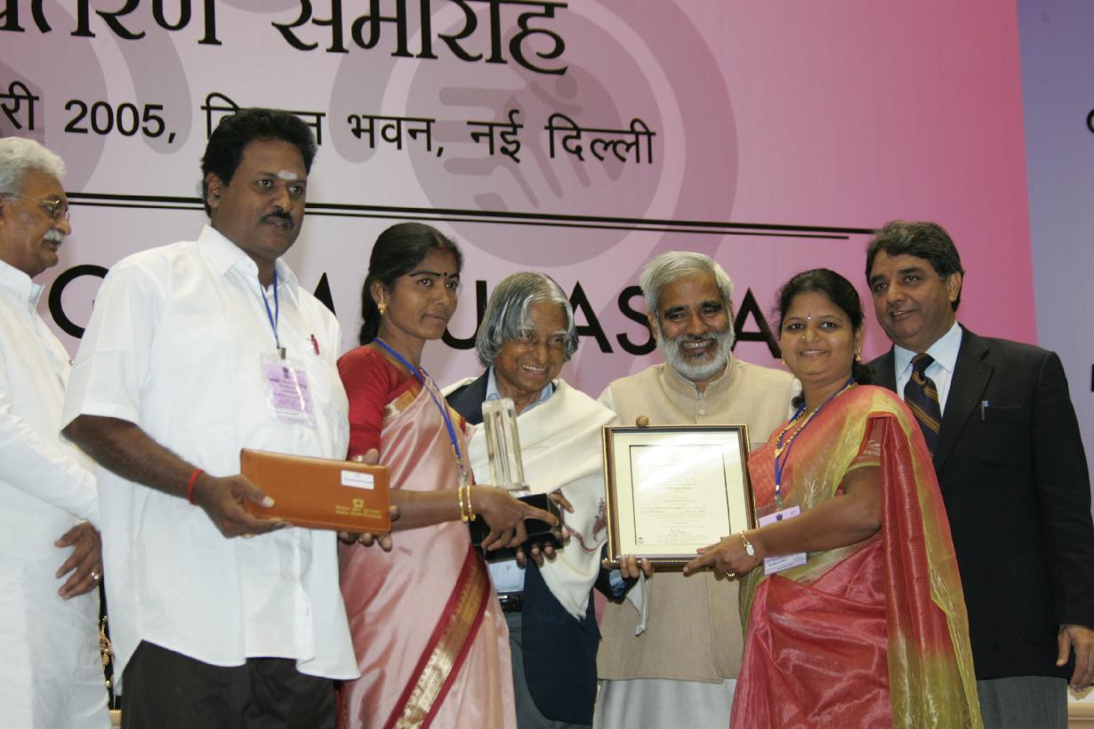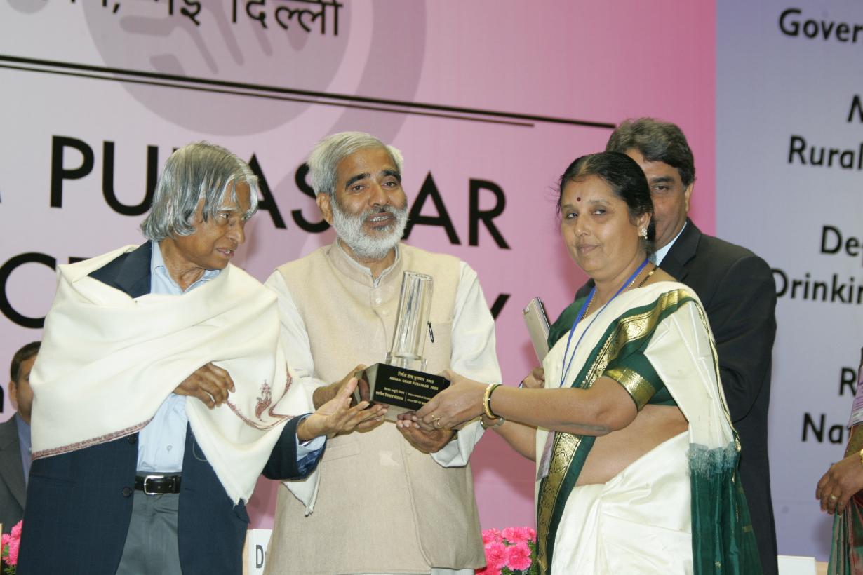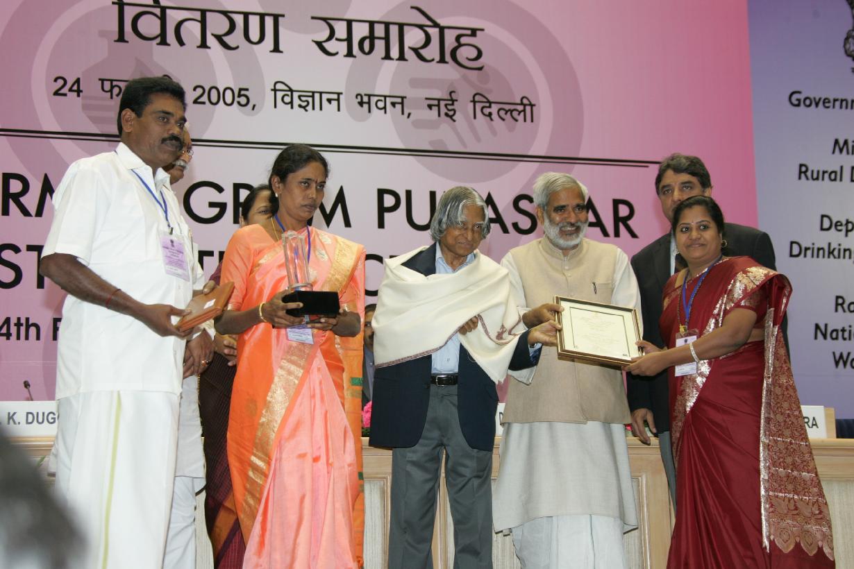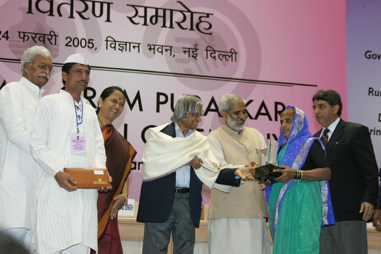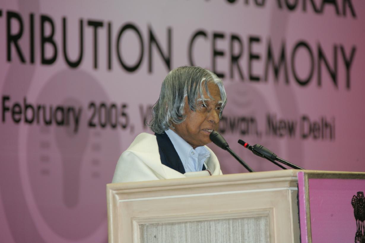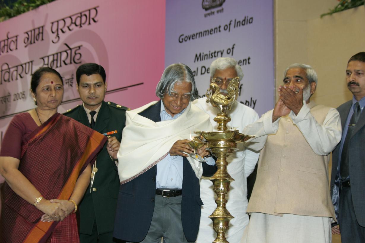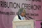 | Caption: | The President of India, Dr A P J Abdul Kalam giving away the Nirmal Gram Puraskar for Panchayati Raj Institutions Achieving Full Sanitation Converage of Department of Drinking Water Supply Ministry of Rural Development at Vigyan Bhavan in New Delhi on Feb 24, 2005 |