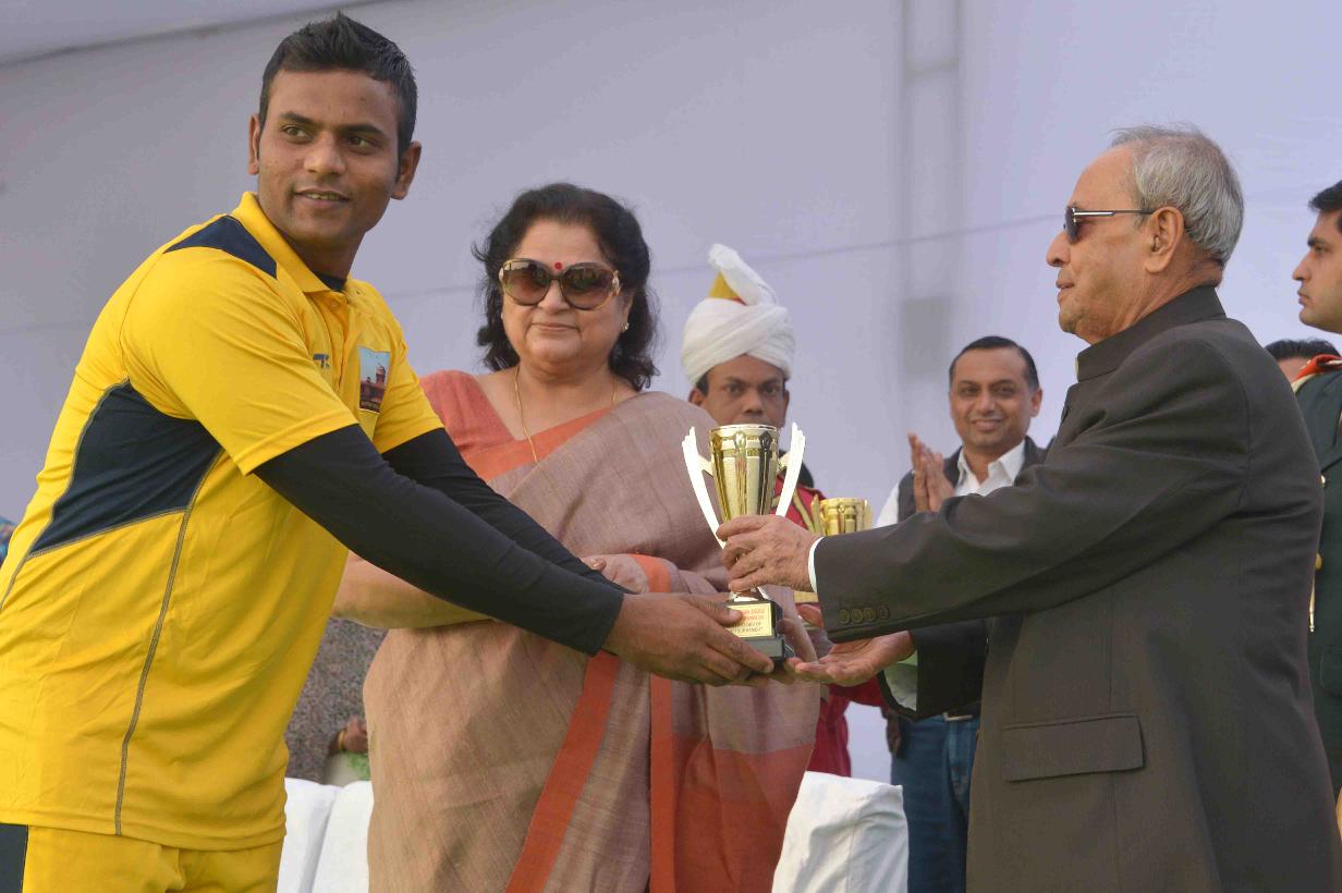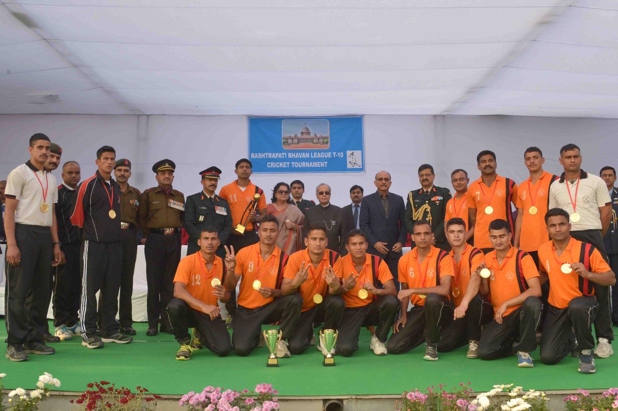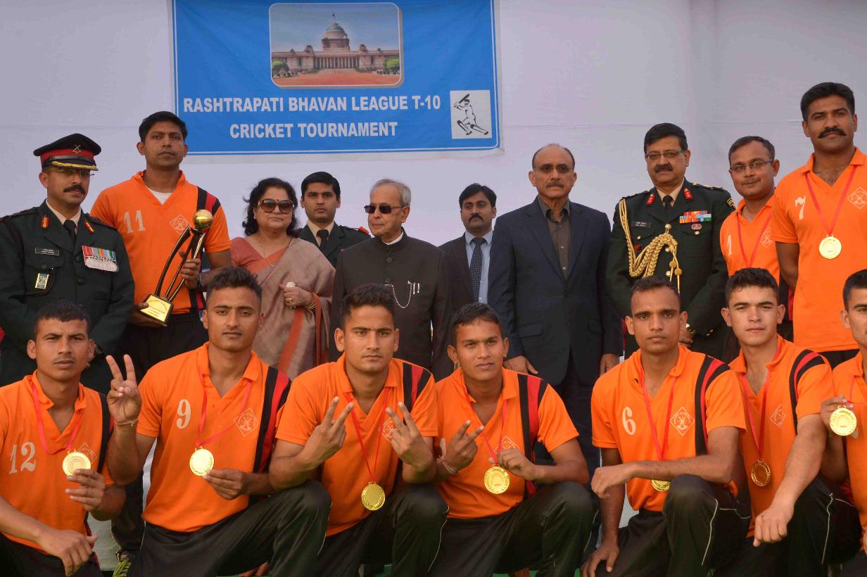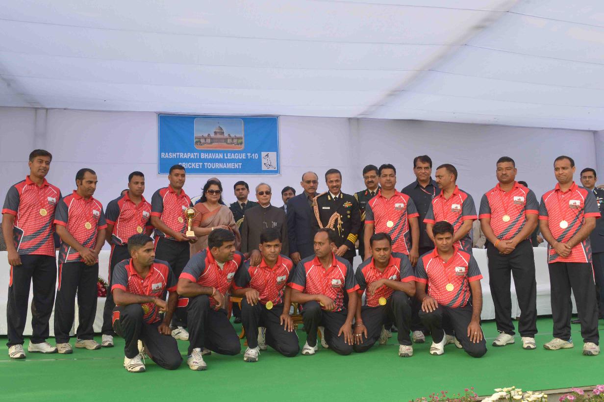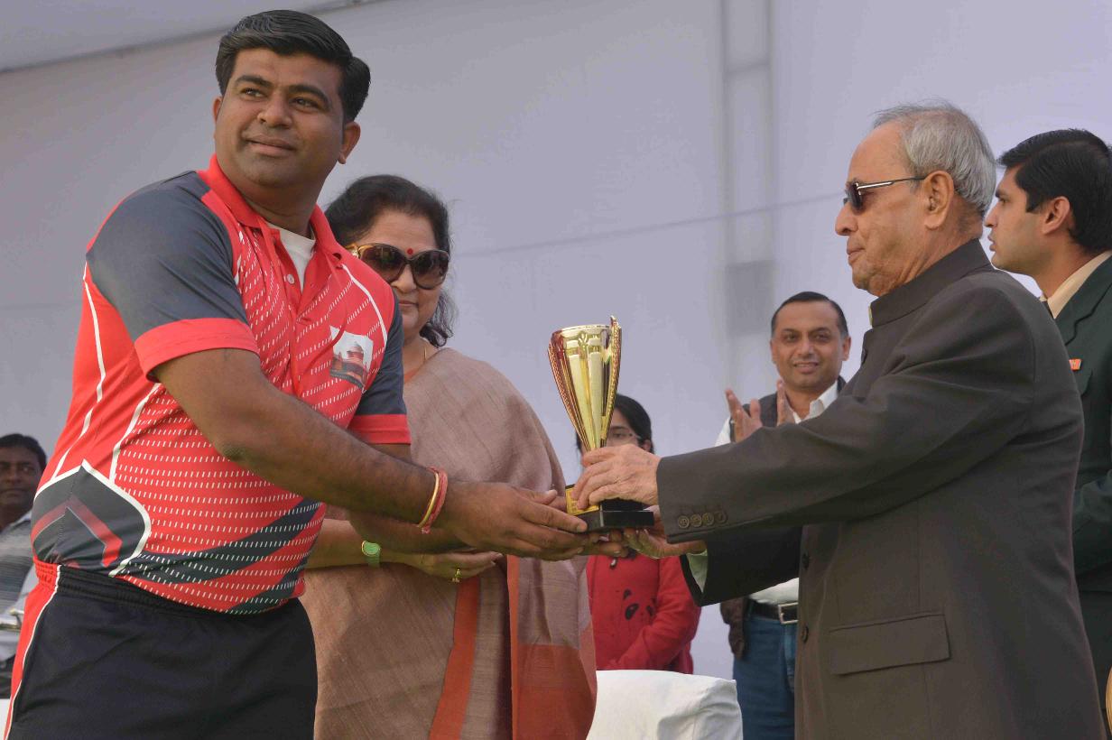 | Caption: | The President of India, Shri Pranab Mukherjee presenting the prizes to the participants of the 2nd Rashtrapati Bhavan League Cricket Tournament 2015, at Dr. Rajendra Prasad Sarovdyda Vidyalaya Sports Ground, President s Estate on December 05, 2015. |