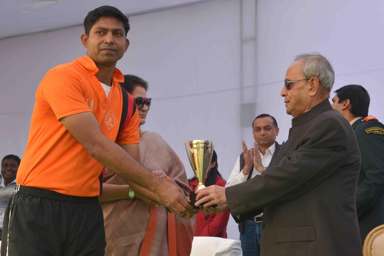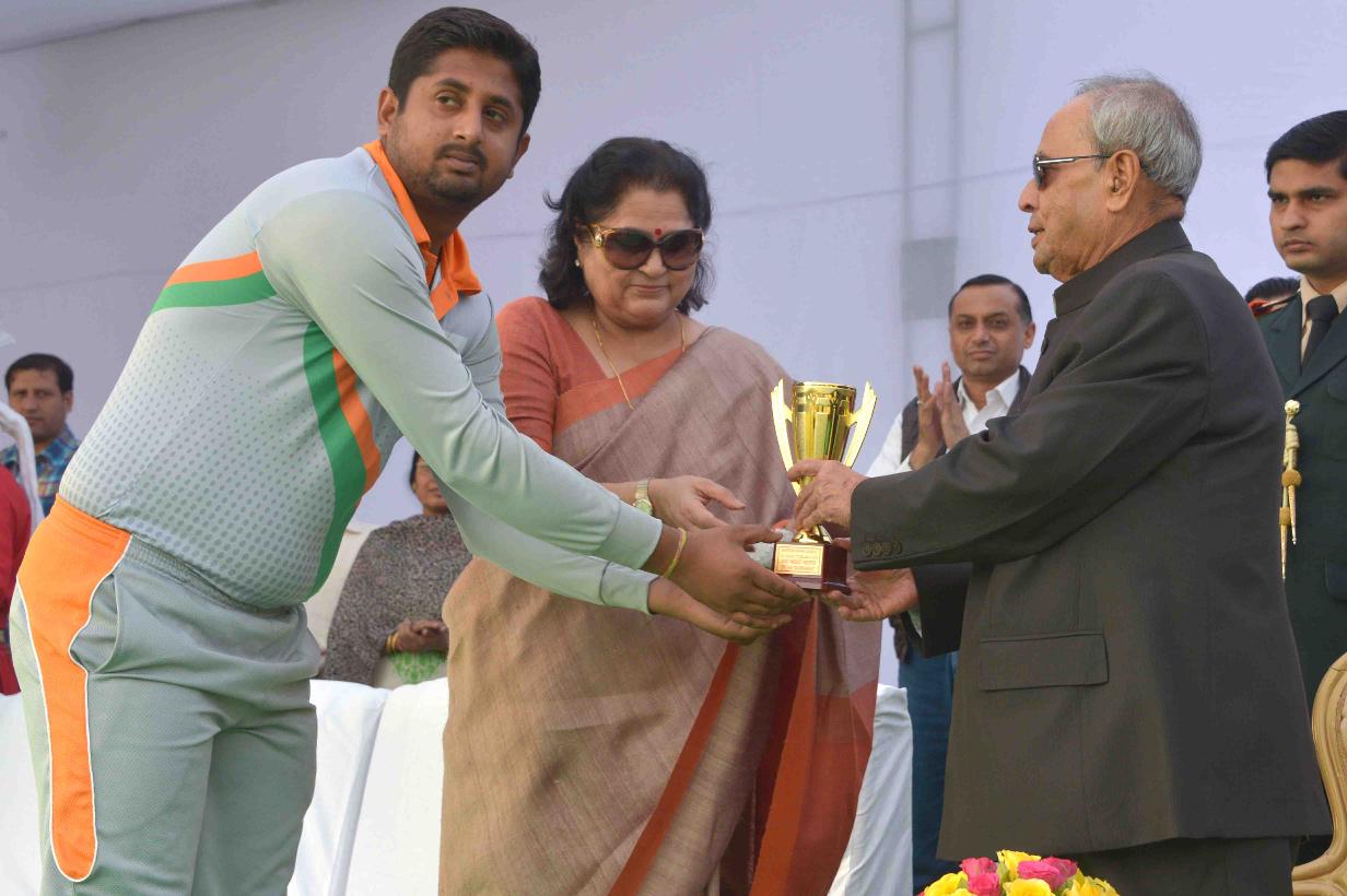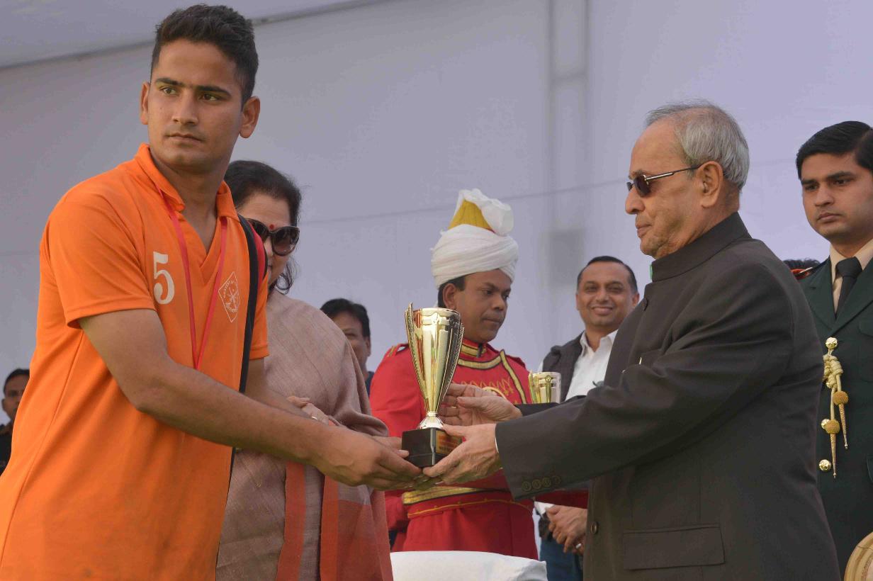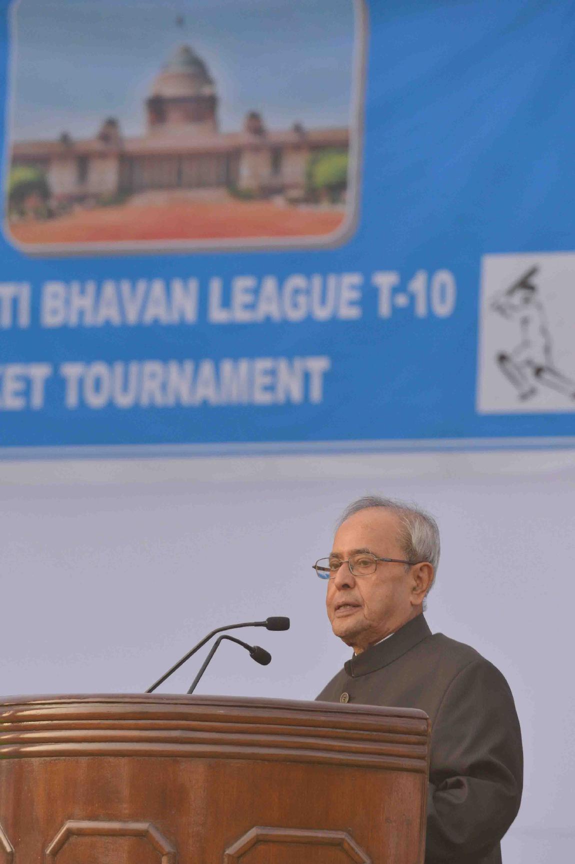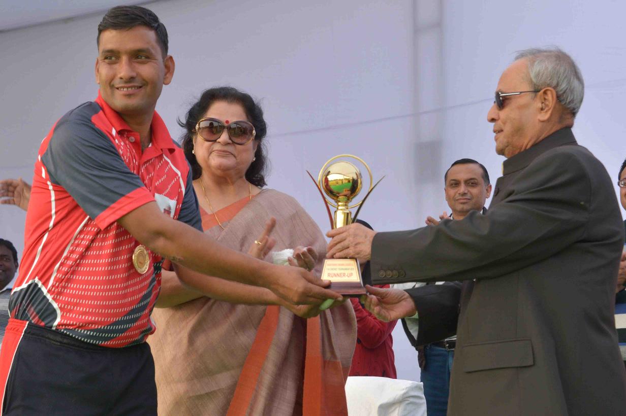 | Caption: | The President of India, Shri Pranab Mukherjee presenting the prizes to the participants of the 2nd Rashtrapati Bhavan League Cricket Tournament 2015, at Dr. Rajendra Prasad Sarovdyda Vidyalaya Sports Ground, President s Estate on December 05, 2015. |
