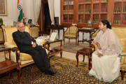 | Caption: | The President of India, Shri Pranab Mukherjee meeting with the Chief Minister of West Bengal, Ms. Mamata Banerjee, at Rashtrapati Bhavan on December 09, 2015. |