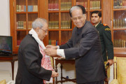 | Caption: | The President of India, Shri Pranab Mukherjee meeting with the Chief Minister of Assam, Shri Tarun Gogoi, at Rashtrapati Bhavan on December 16, 2015. |