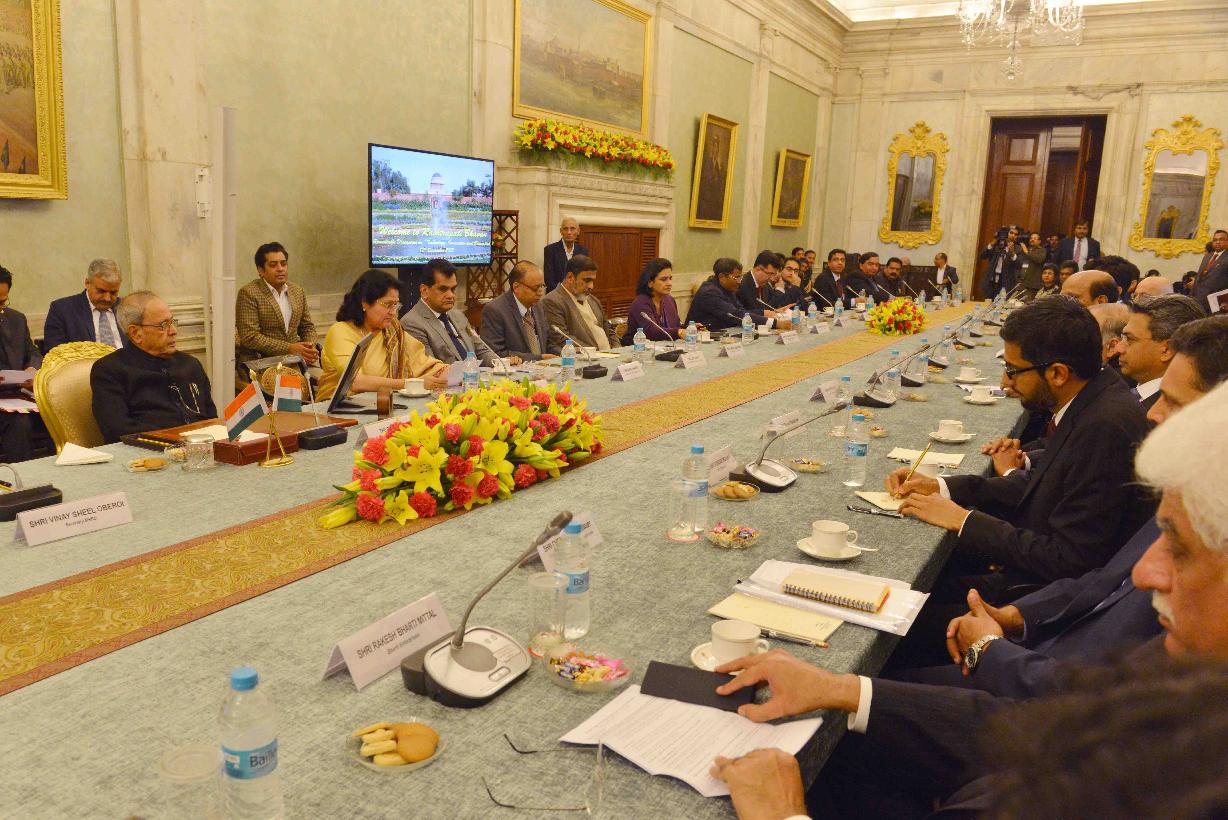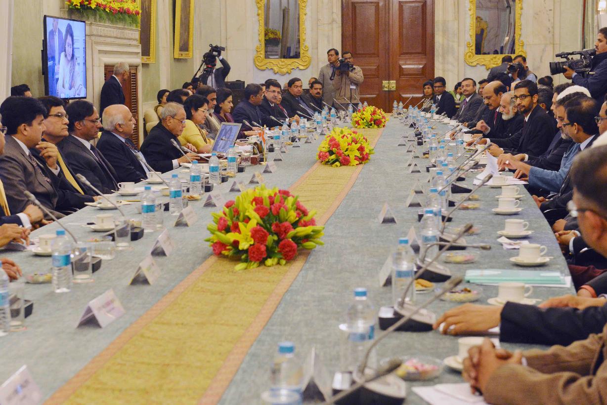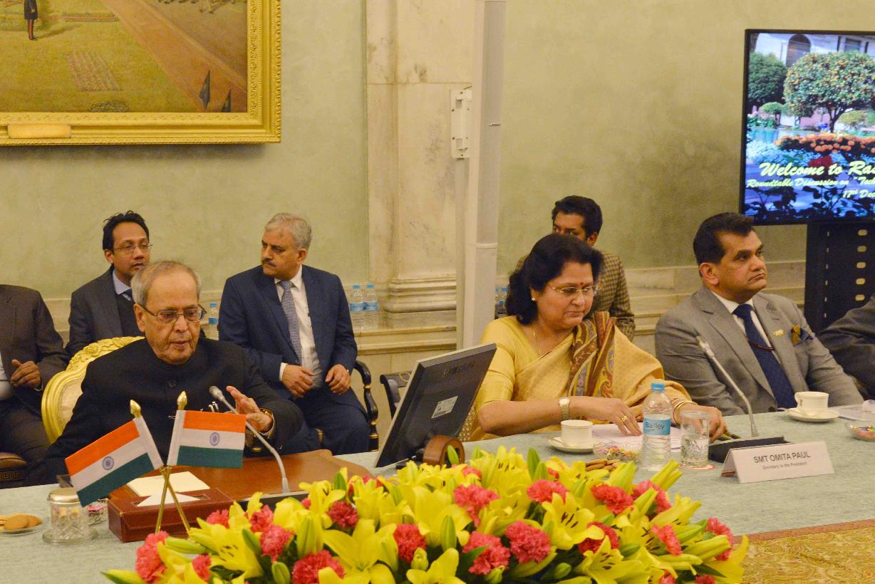 | Caption: | The President of India, Shri Pranab Mukherjee during the Roundtable Discussion on "Technology, Innovation and Education", at Rashtrapati Bhavan on December 17, 2015. |
