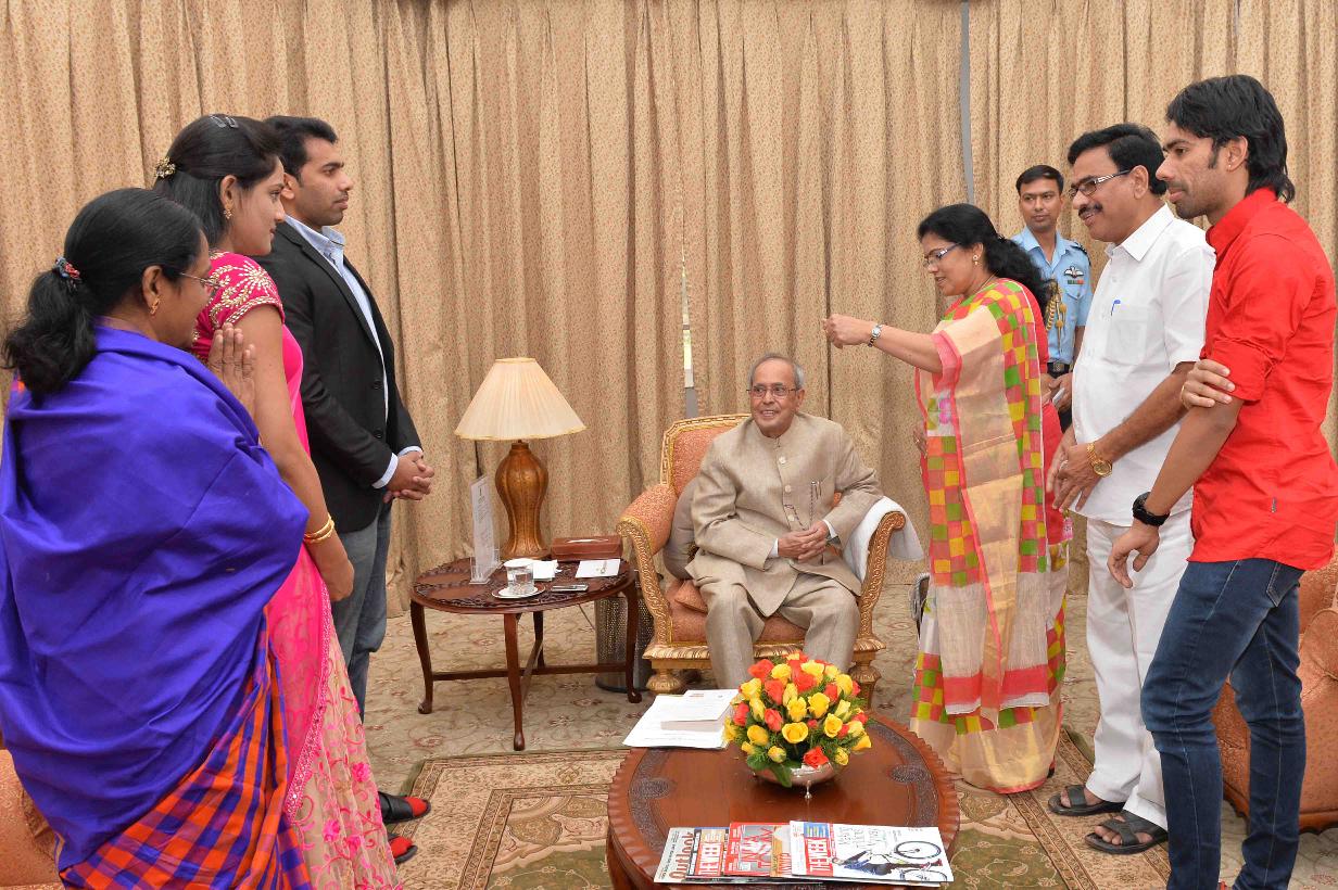 | Caption: | The President of India, Shri Pranab Mukherjee meeting with Dr. (Smt.) Kruparani Killi with others, at Rashtrapati Nilayam, Bolarum, in Secunderabad on December 24, 2015. |
