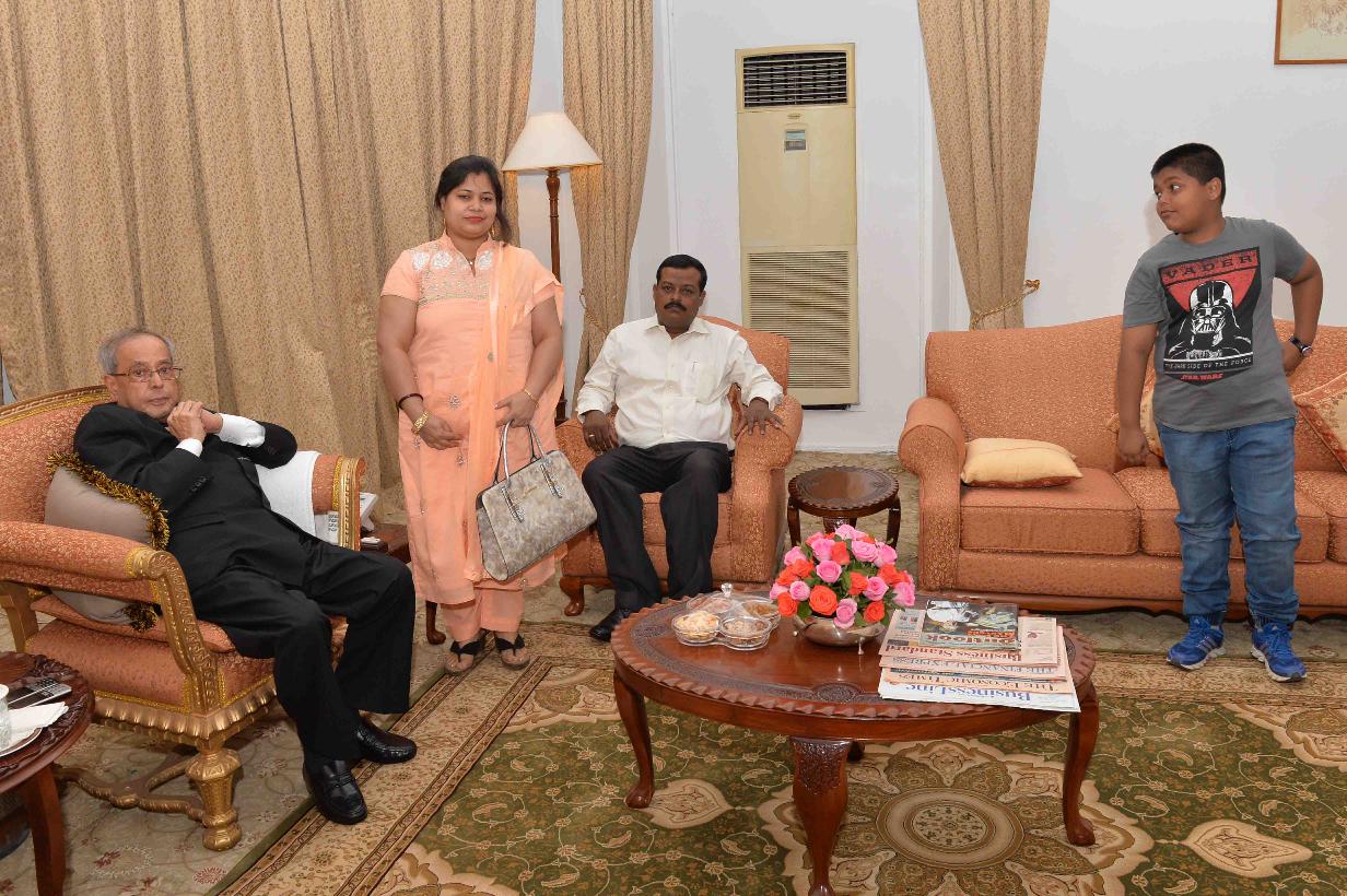 | Caption: | The President of India, Shri Pranab Mukherjee meeting with Smt. Anindita Mukherjee with others, at Rashtrapati Nilayam, Bolarum, in Secunderabad on December 19, 2015. |
