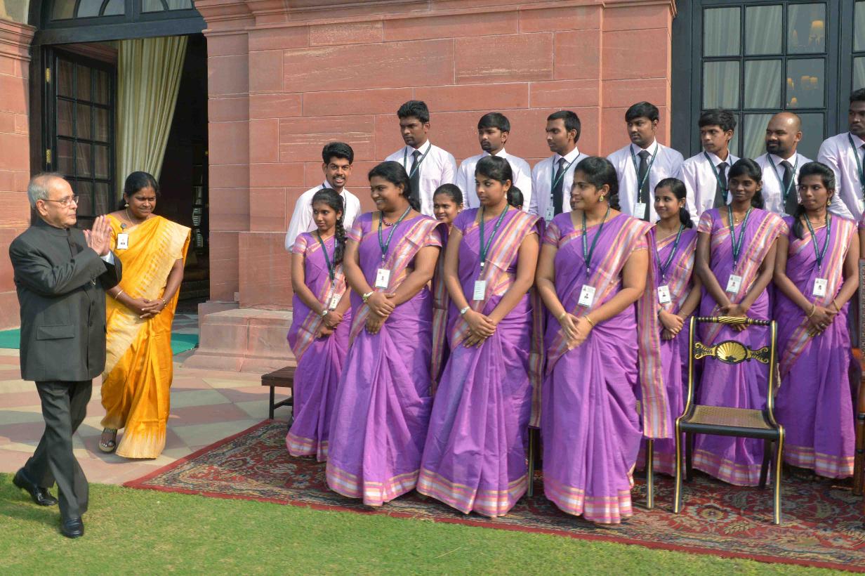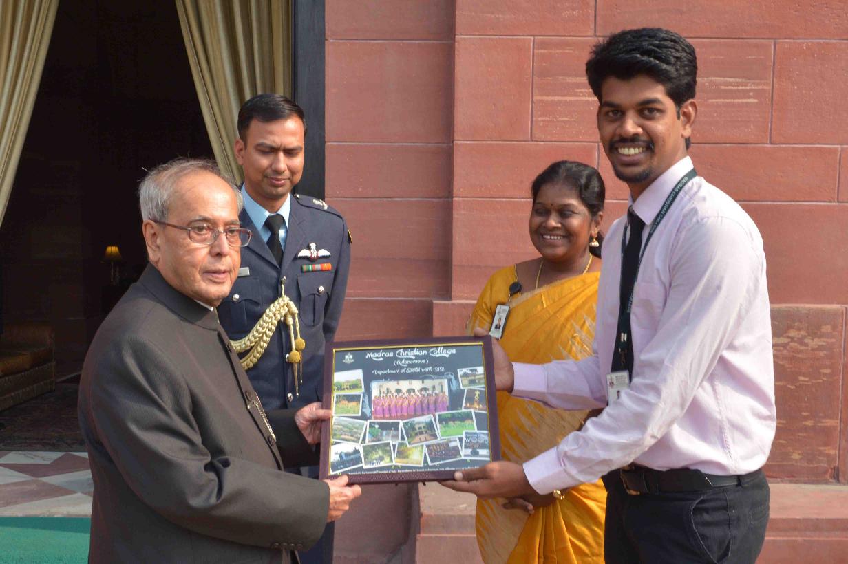 | Caption: | The President of India, Shri Pranab Mukherjee with the students from the Department of Social Work, Madras Christian College, Chennai, at Rashtrapati Bhavan on November 24, 2015. |