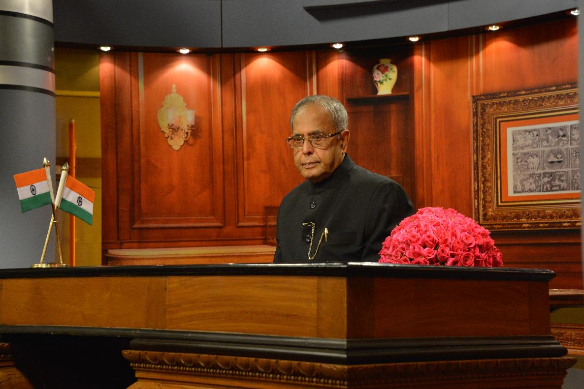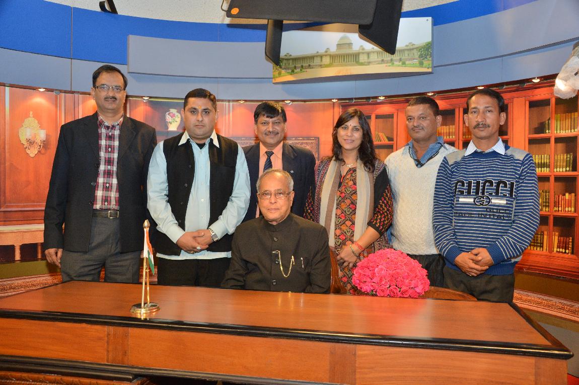 | Caption: | The President of India, Shri Pranab Mukherjee recording of Video Message on the life of the Rabindranath Tagore for CU on November 24, 2012 |